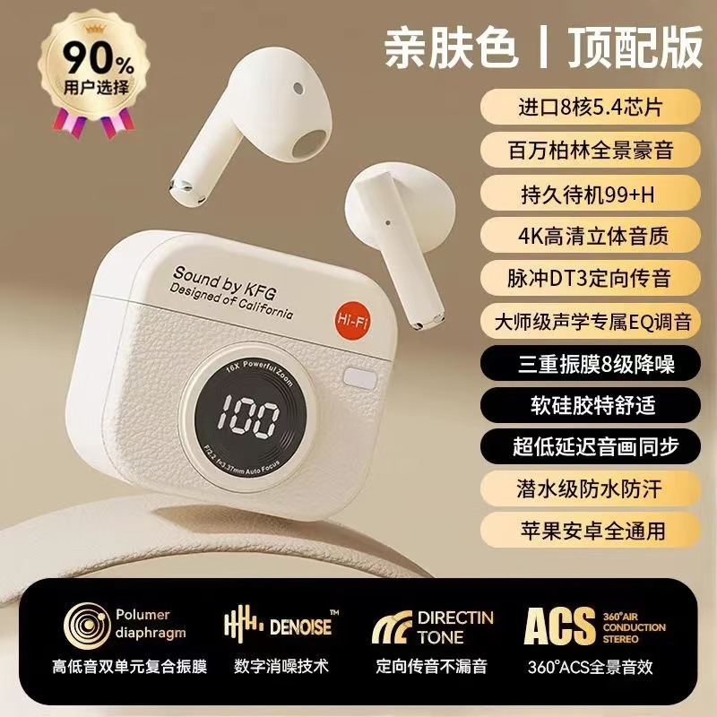 • 플래그십 버전 - 레트로 브라운 [천위안 서라운드 8D 사운드 - 블루투스 5.2 듀얼 칩 - 고화질 통화]