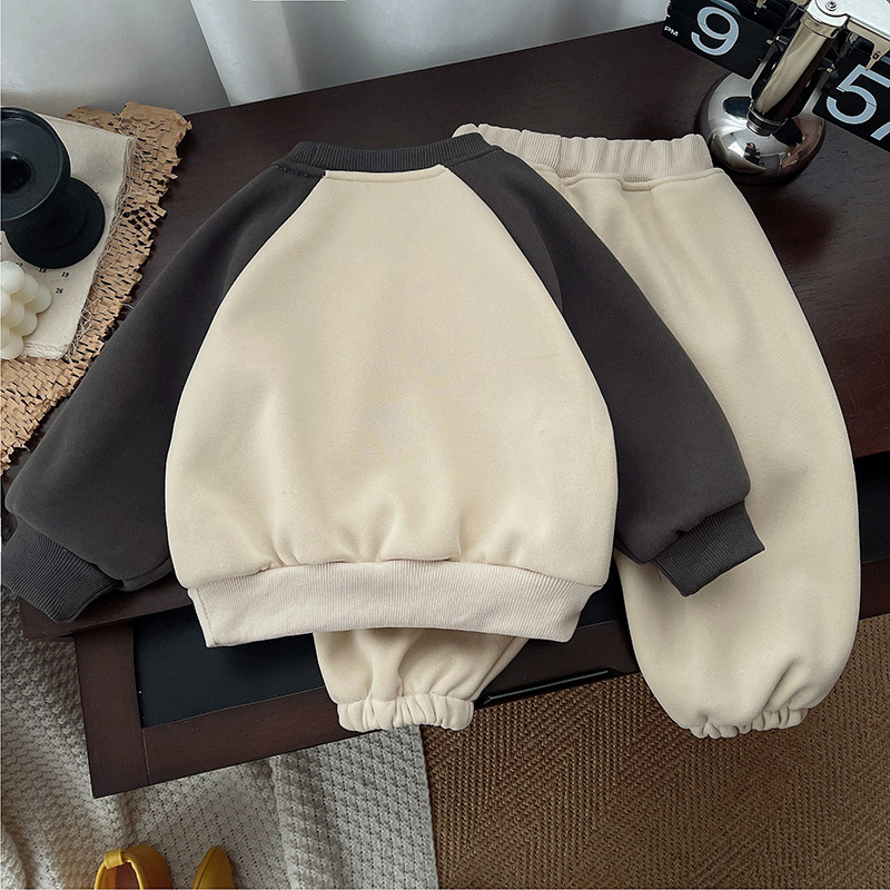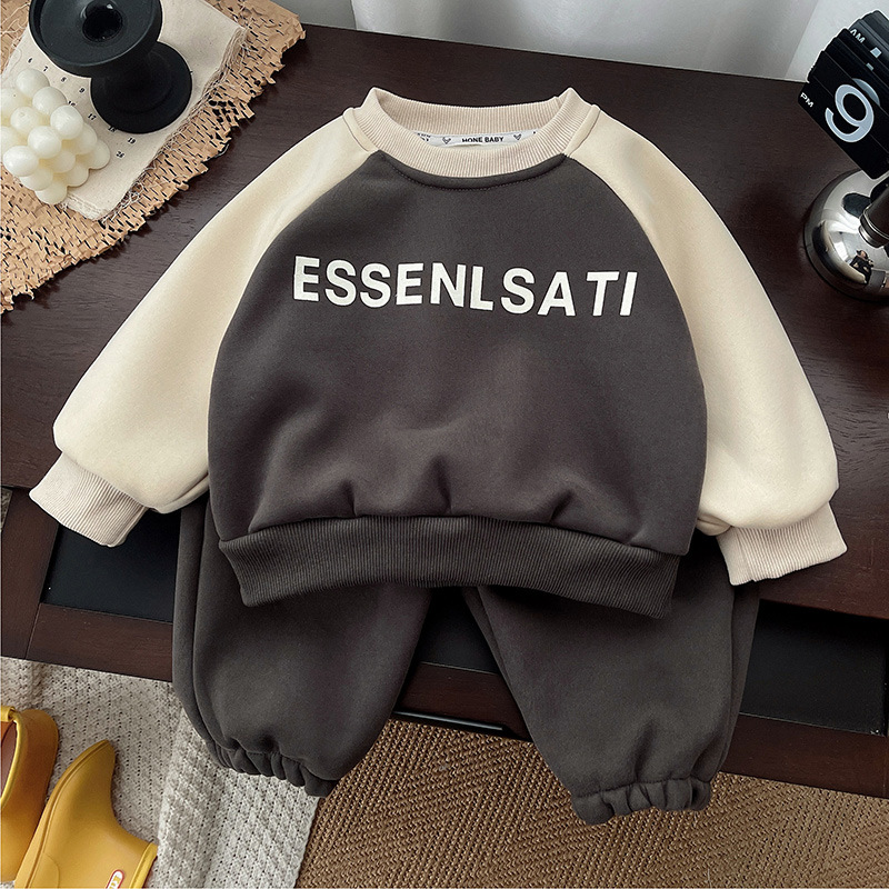 어린이 착용 소년 양털 세트 2023 새로운 가을과 겨울 어린이 스포츠 캐주얼 스웨터 바지 아기 겨울 두 조각