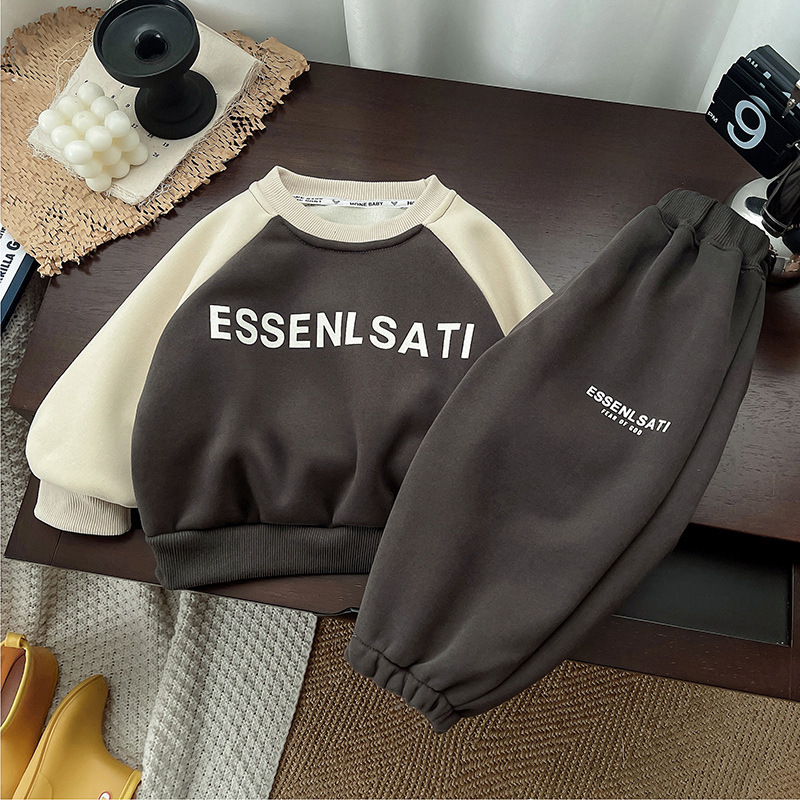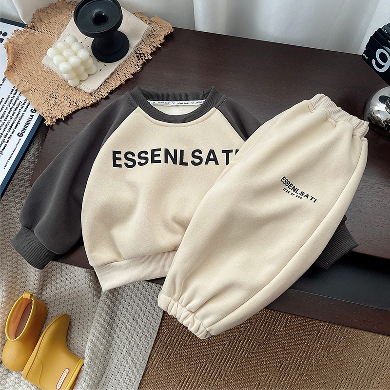 어린이 착용 소년 양털 세트 2023 새로운 가을과 겨울 어린이 스포츠 캐주얼 스웨터 바지 아기 겨울 두 조각스토어 가기
