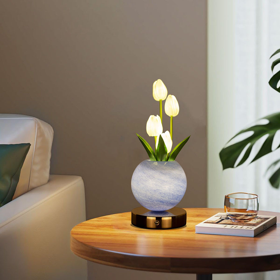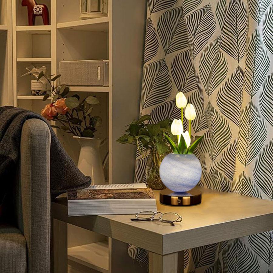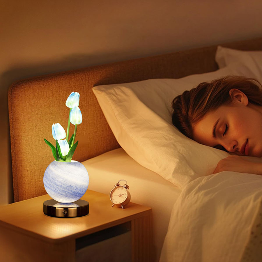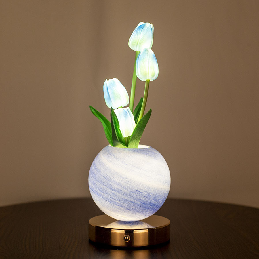 국경 새 튤립 나이트 라이트 커플 선물 드림 플래닛 테이블 램프 장식품 침실 침실 분위기 램프스토어 가기