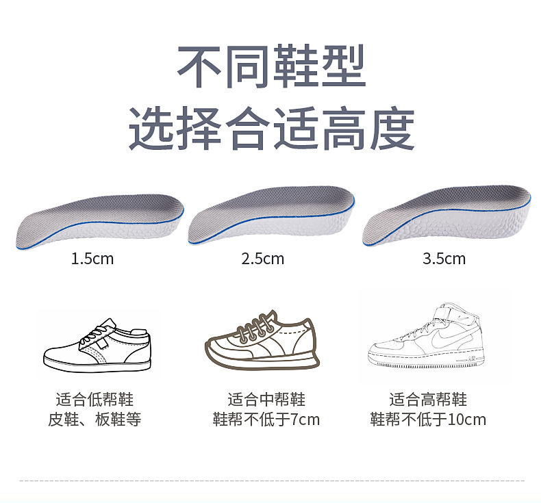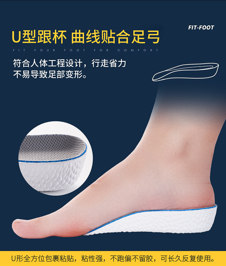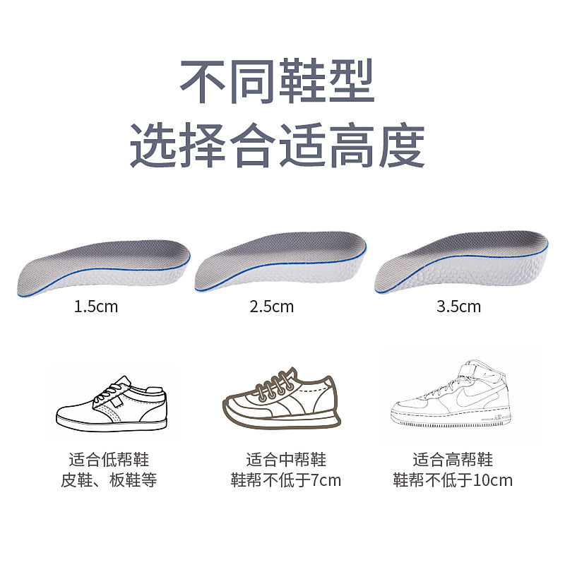보이지 않는 남성과 여성의 인솔 증가 부스트 아치 지원 부드러운 탄성 하프 패드 팝콘 공장 도매스토어 가기