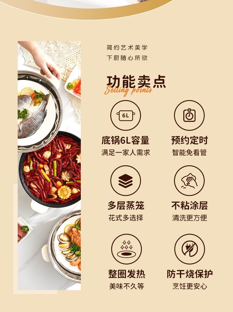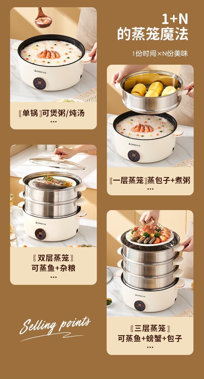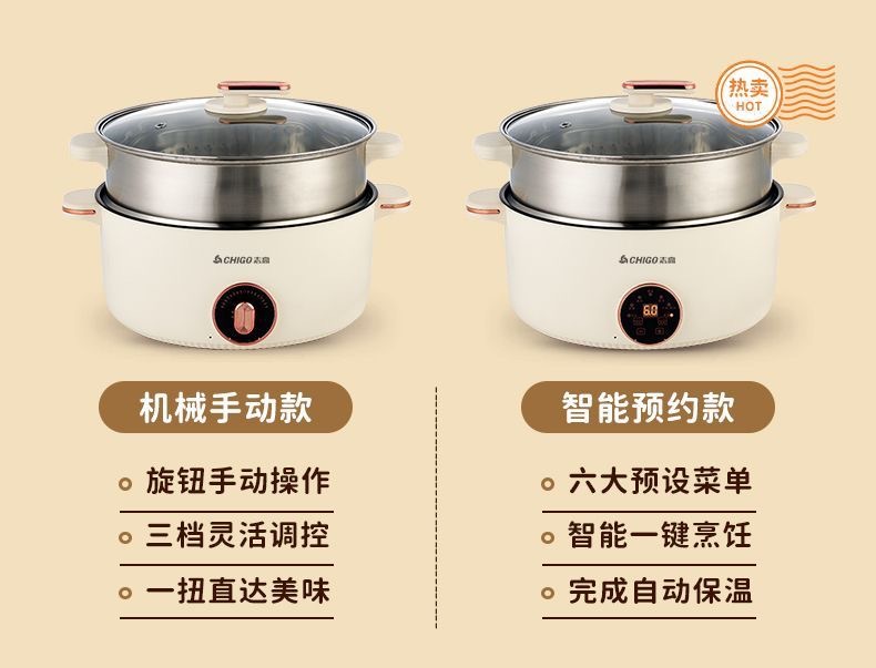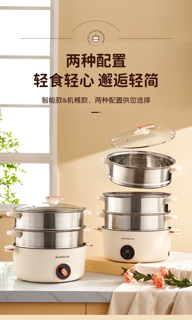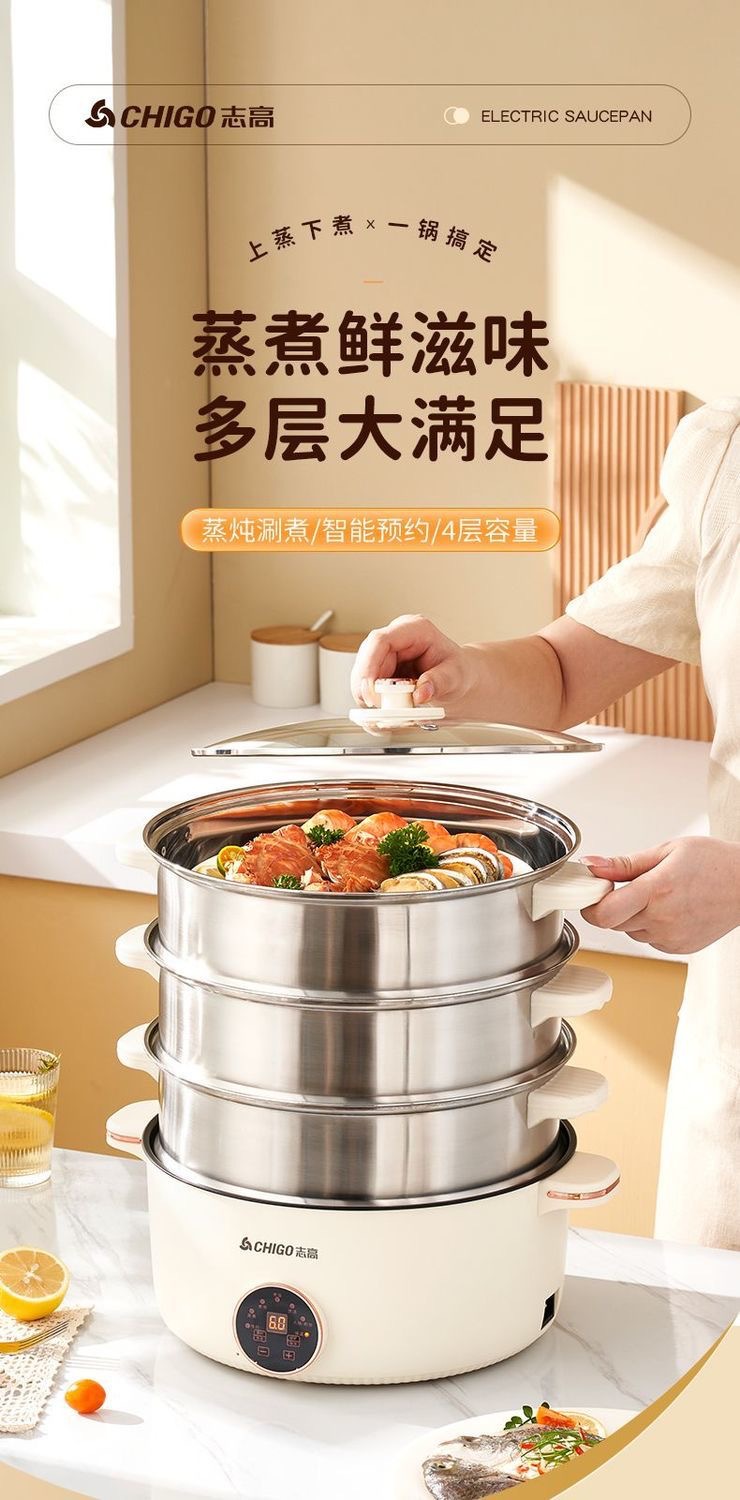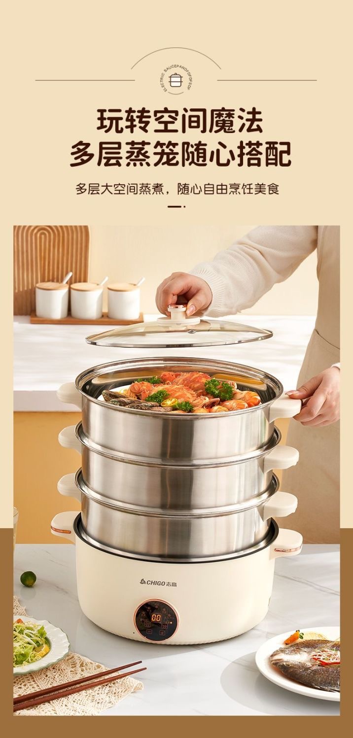 공장 직송 대용량 전기냄비 예약 타이머 다층찜기 전기전골냄비 가정용 전기찜기 선물