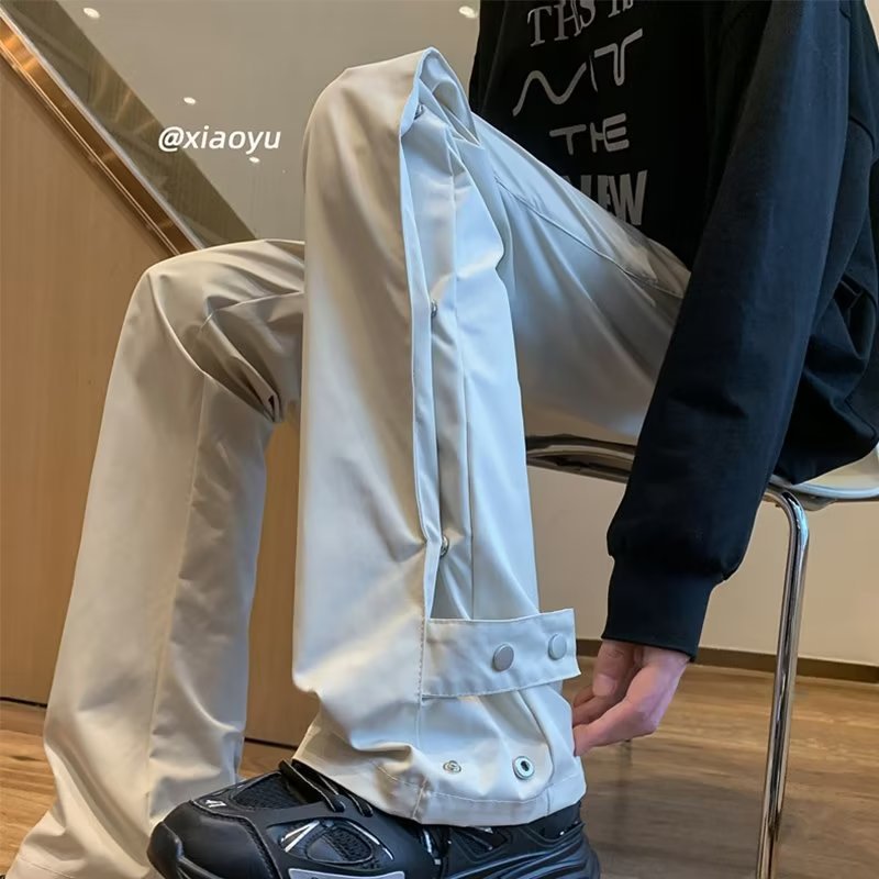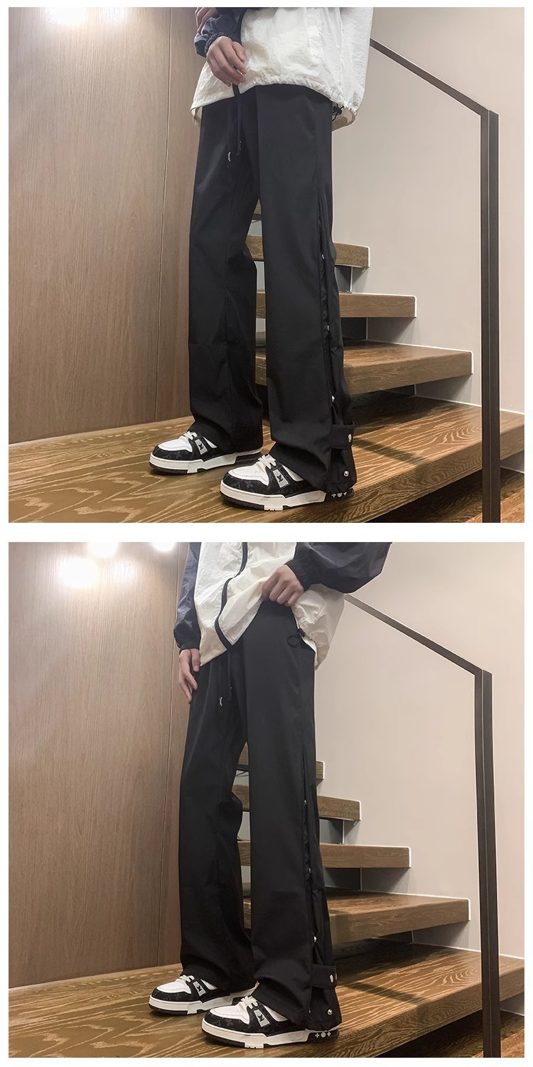 버클 바지 남자의 가을과 겨울 새로운 미국식 바이브 기능성 마이크로 라르 바지 유행 브랜드 루즈 스트레이트 캐주얼 바지