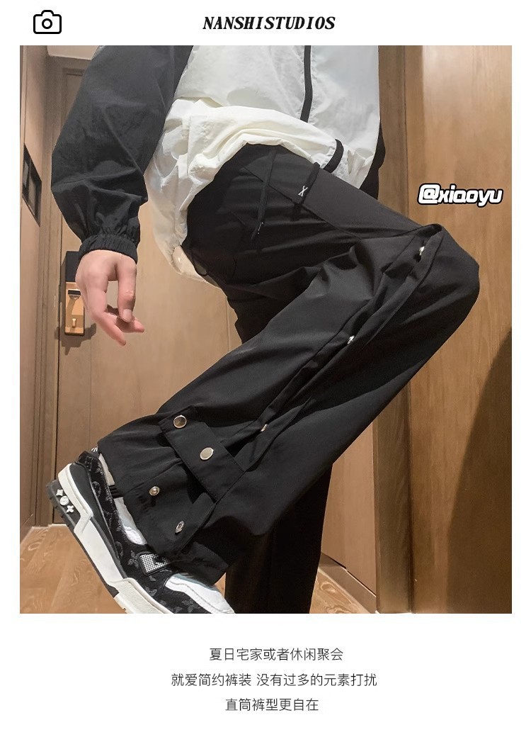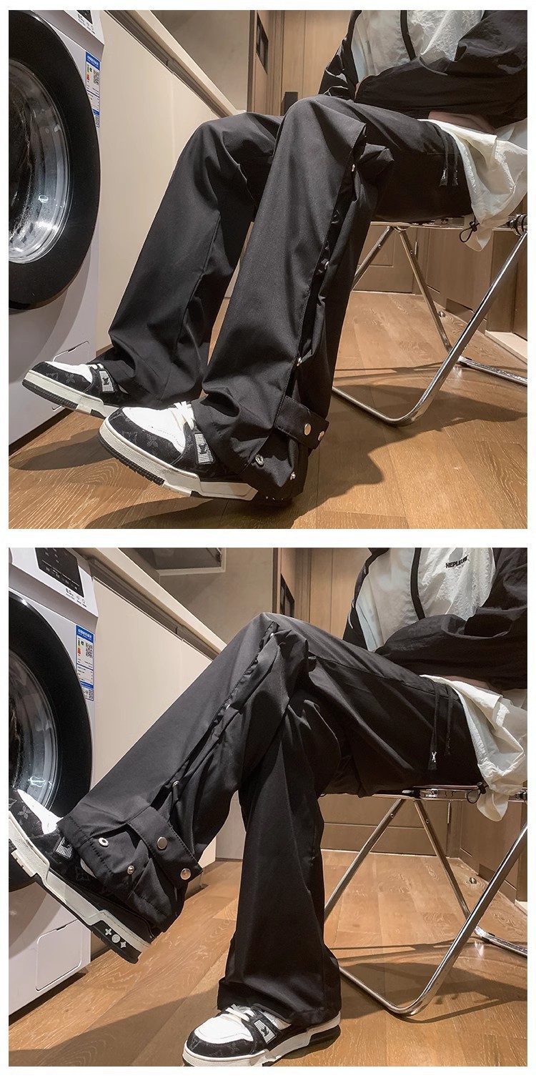 버클 바지 남자의 가을과 겨울 새로운 미국식 바이브 기능성 마이크로 라르 바지 유행 브랜드 루즈 스트레이트 캐주얼 바지스토어 가기