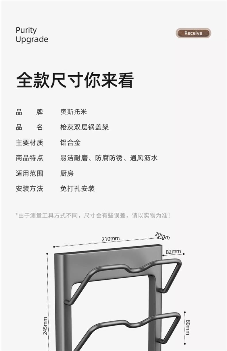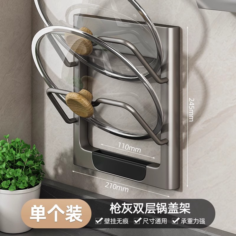 • 흡착컵 장착형 이중 냄비 뚜껑 보관함 - 건 그레이