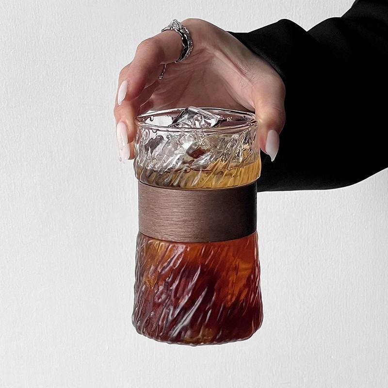 즉시 배송 가능한 유리 걸이형 커피잔 투명 컵커버 포함 아이스 아메리카노 컵 레트로 고급스러운 고붕규산 유리컵