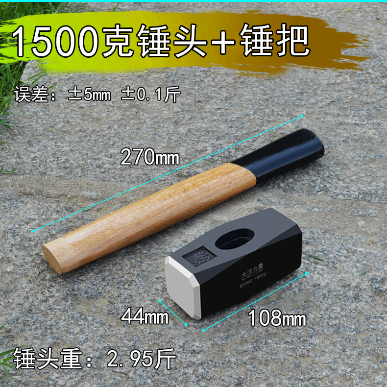• 1500g 석재 강철 해머 헤드 + 해머 핸들