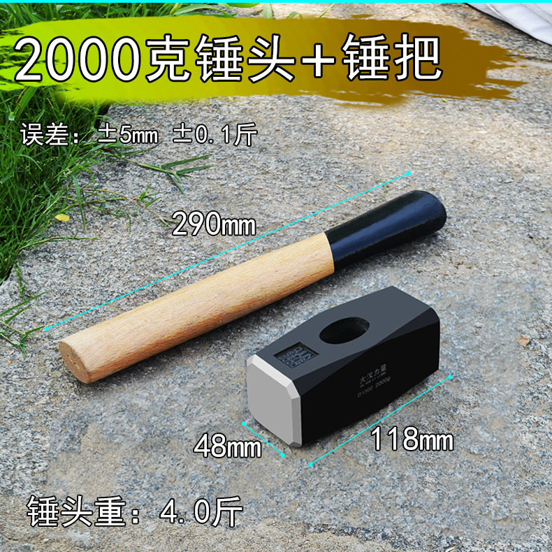 • 2000g 석재 강철 해머 헤드 + 해머 핸들