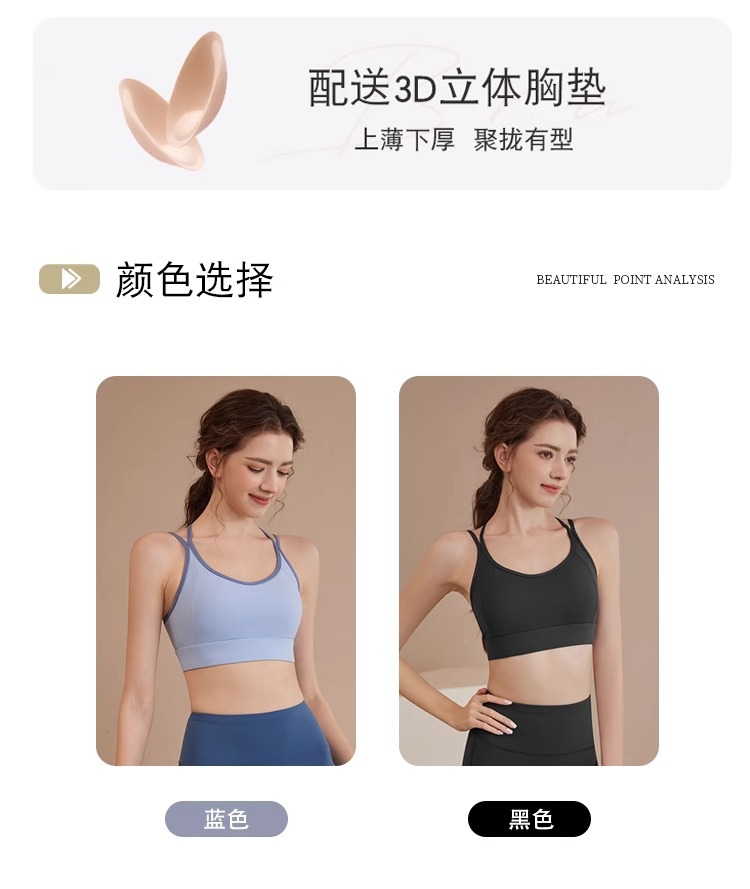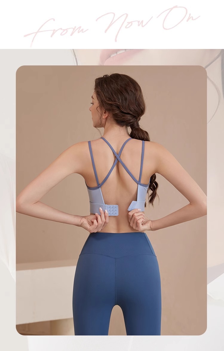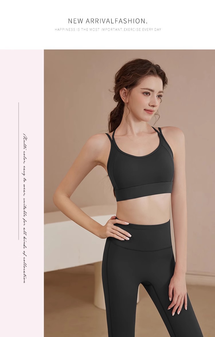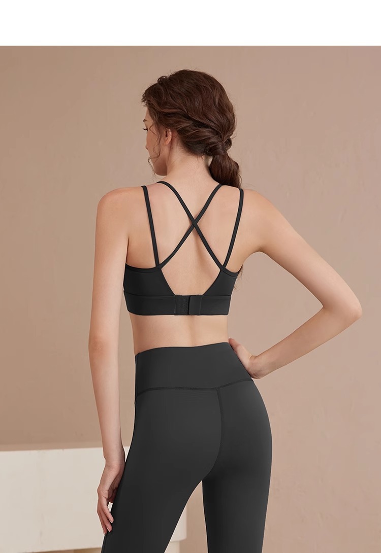 새로운 요가 조끼 슬링 뷰티 백 얇은 어깨 끈 스포츠 속옷 브래지어 크로스 원피스 고정 컵 요가 착용