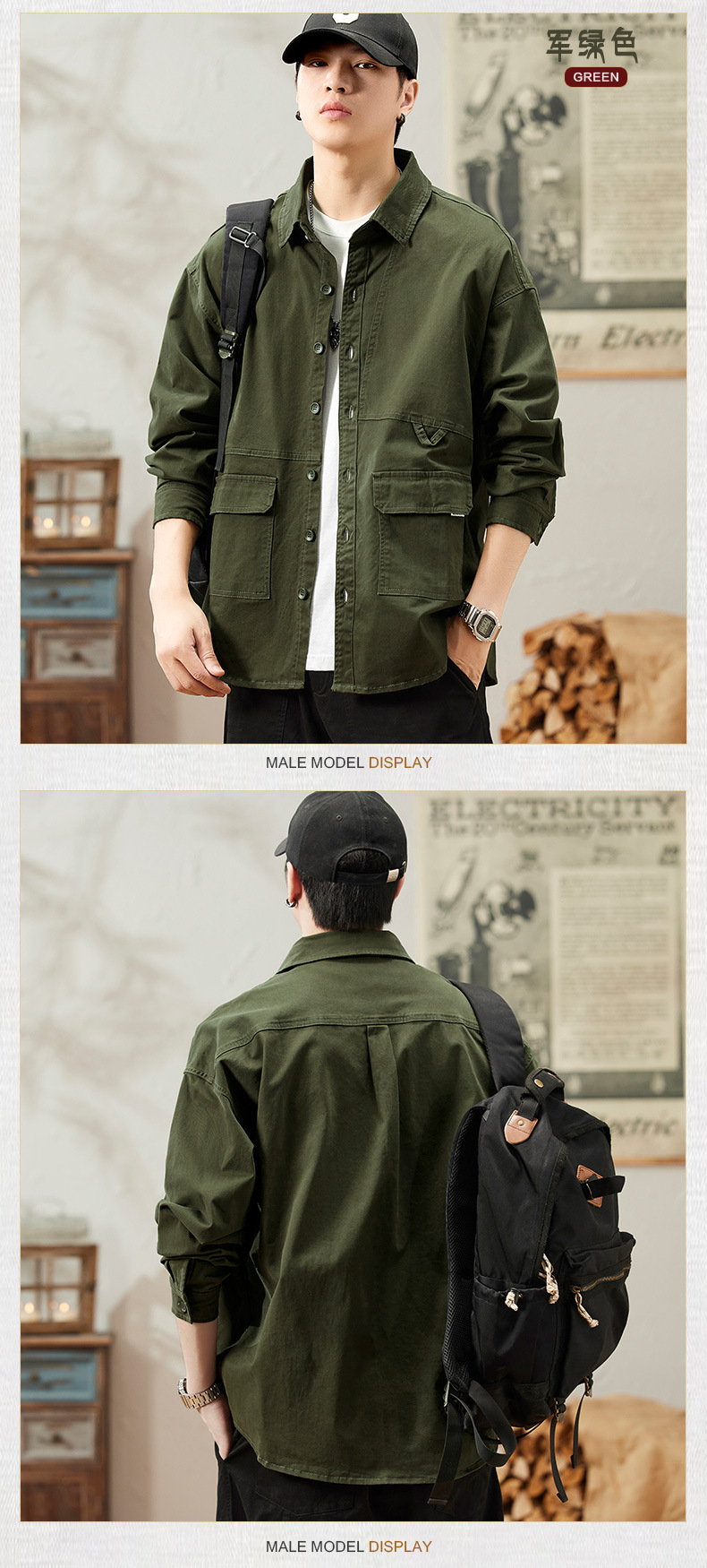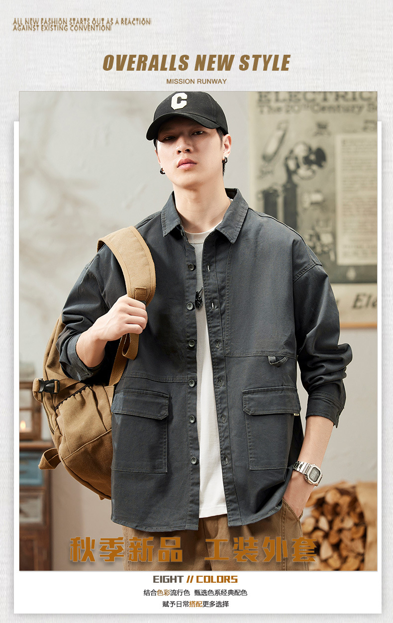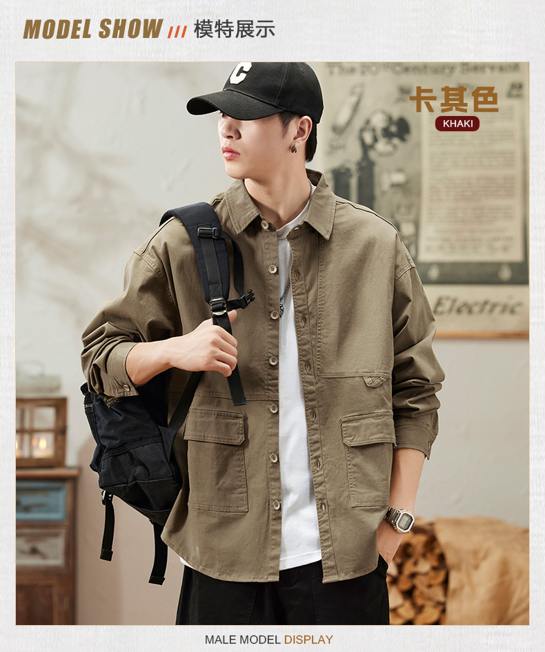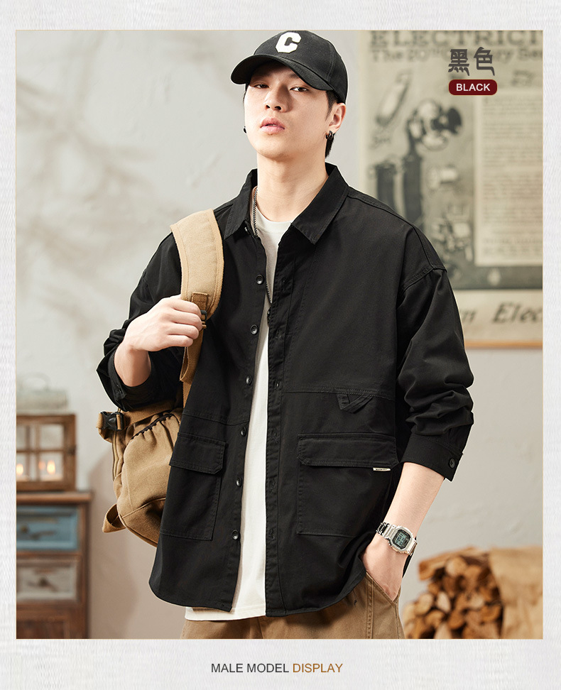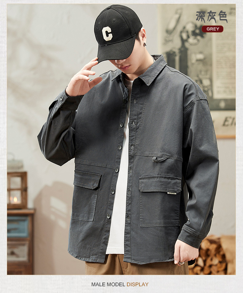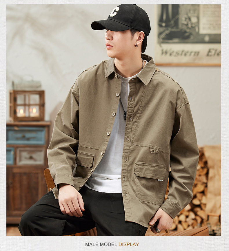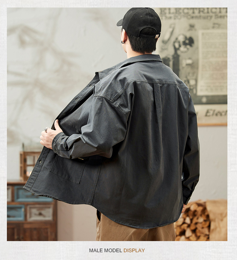 봄과 가을 미국 빈티지 작업 셔츠 남성용 긴팔 새 스타일 느슨한 플러스 사이즈 셔츠 남성용 캐주얼 가을 재킷스토어 가기