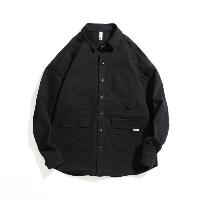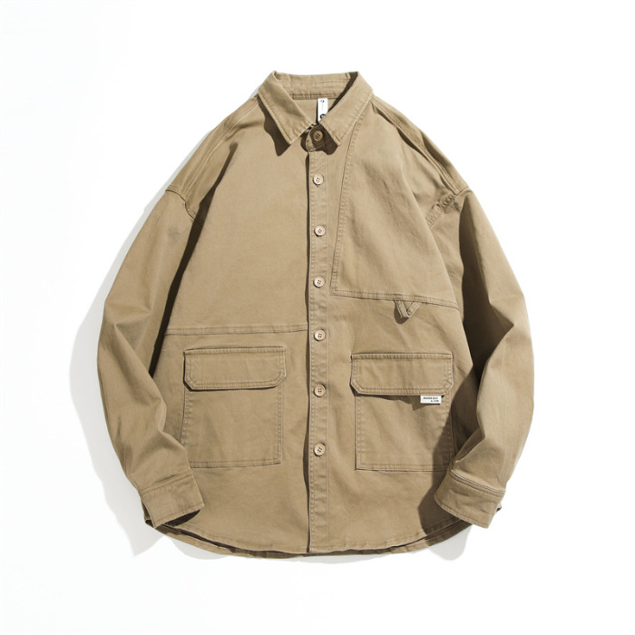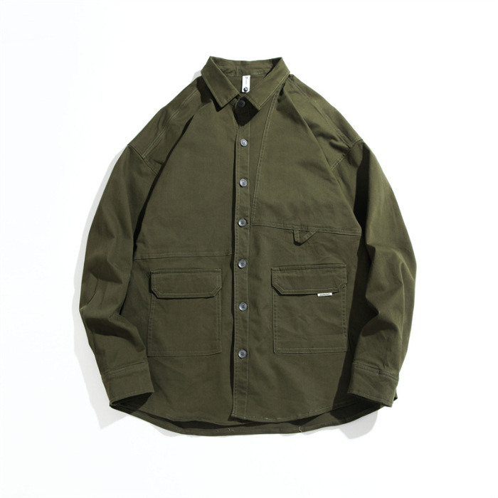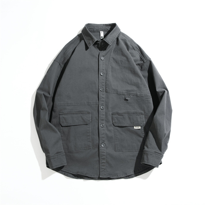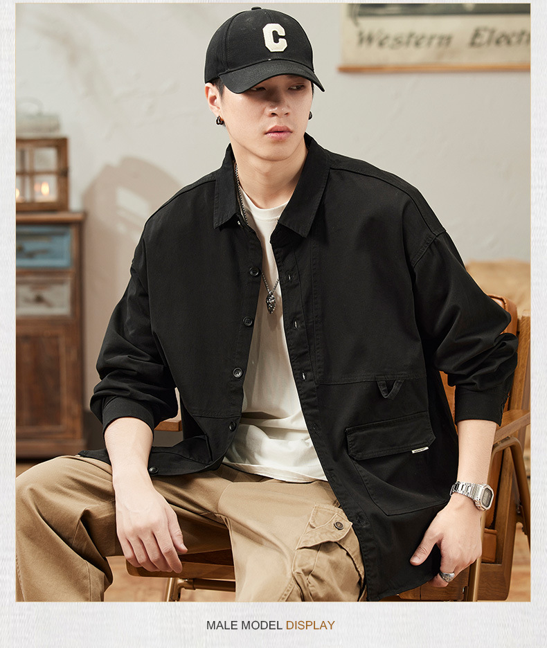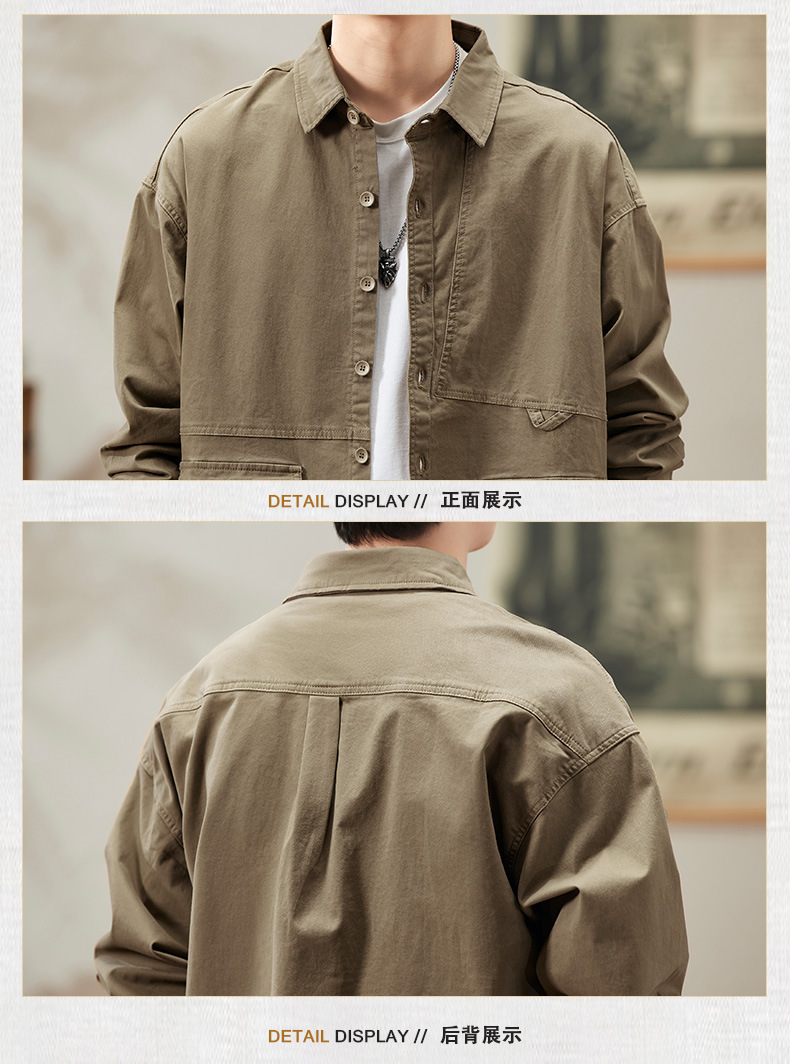 봄과 가을 미국 빈티지 작업 셔츠 남성용 긴팔 새 스타일 느슨한 플러스 사이즈 셔츠 남성용 캐주얼 가을 재킷