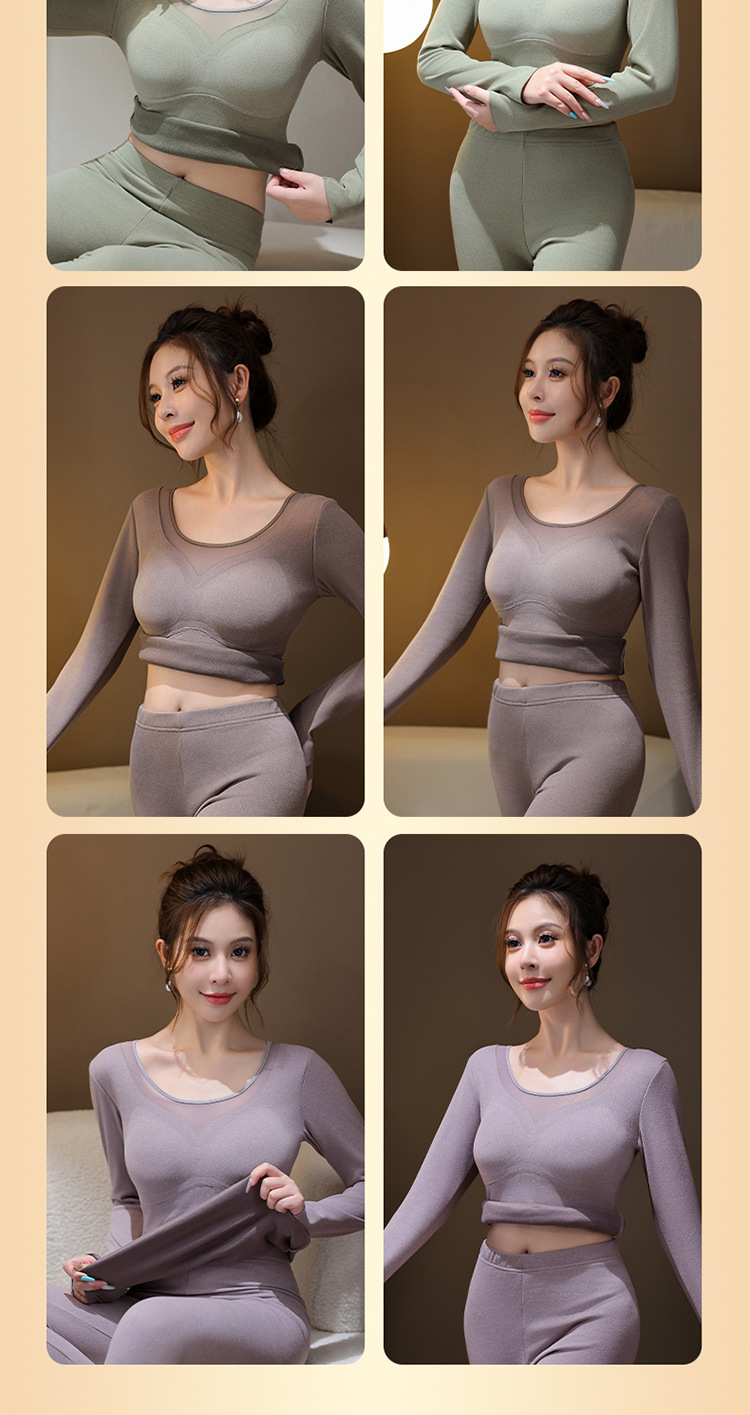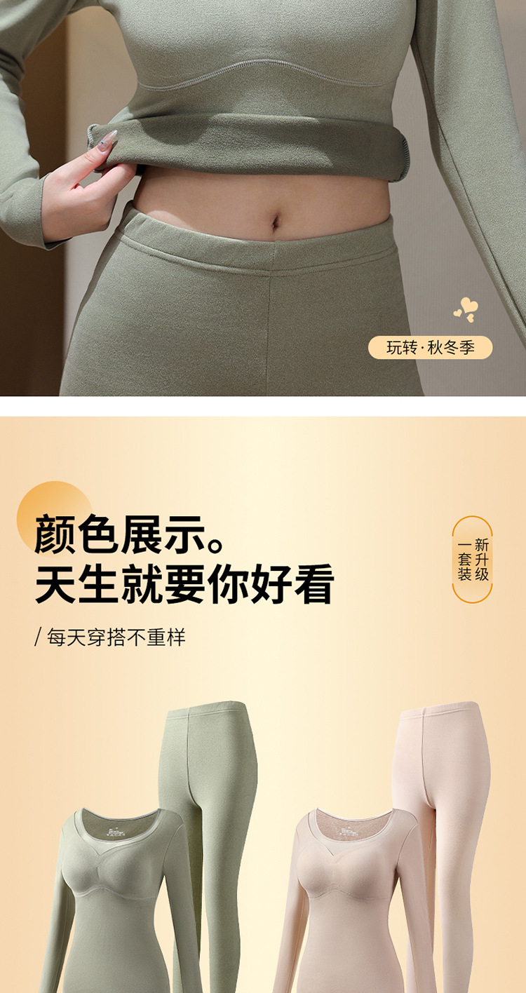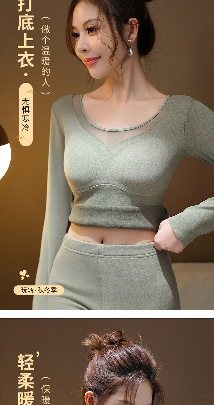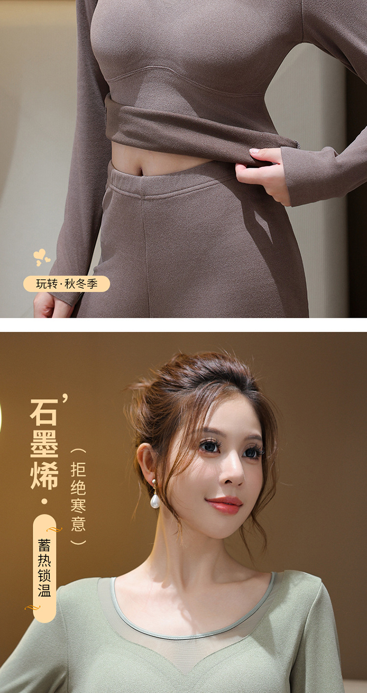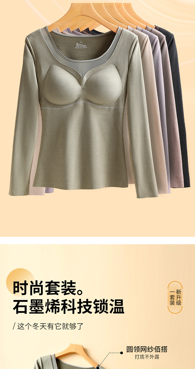 그래픽 가열 열 속옷 여자 세트 기모 흉부 패드 통합 기본 가을 옷과 겨울 바지스토어 가기