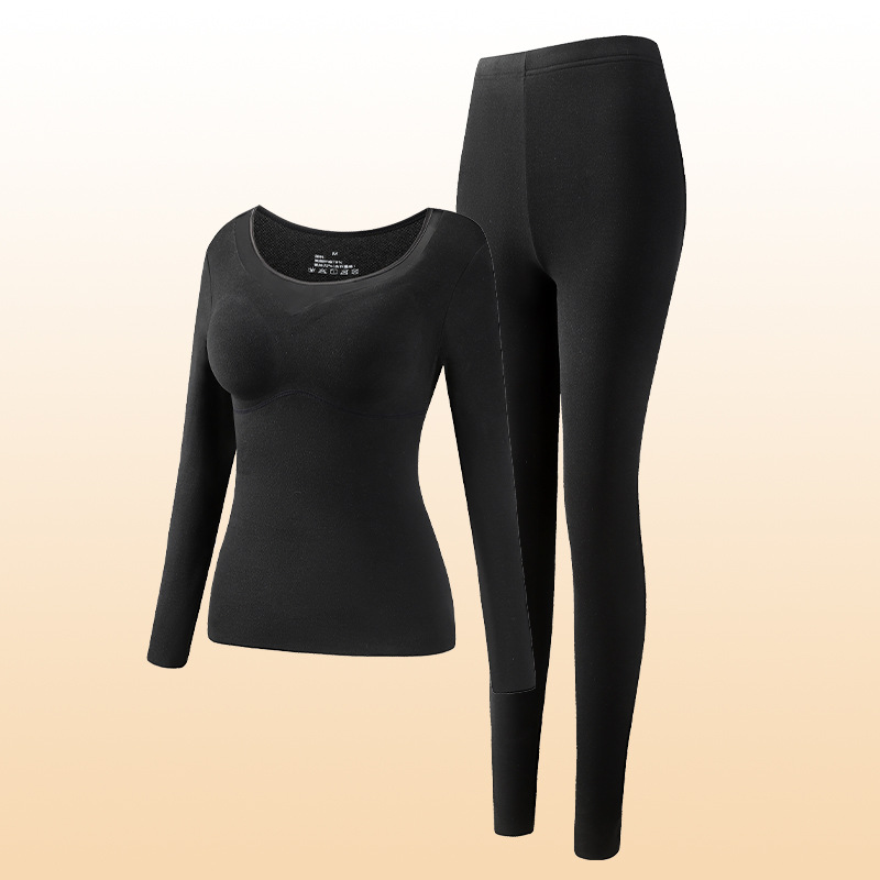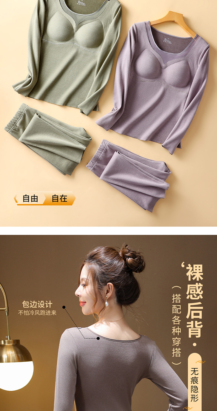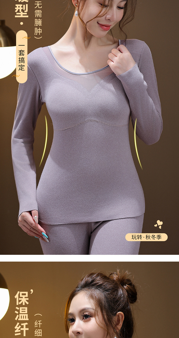 그래픽 가열 열 속옷 여자 세트 기모 흉부 패드 통합 기본 가을 옷과 겨울 바지