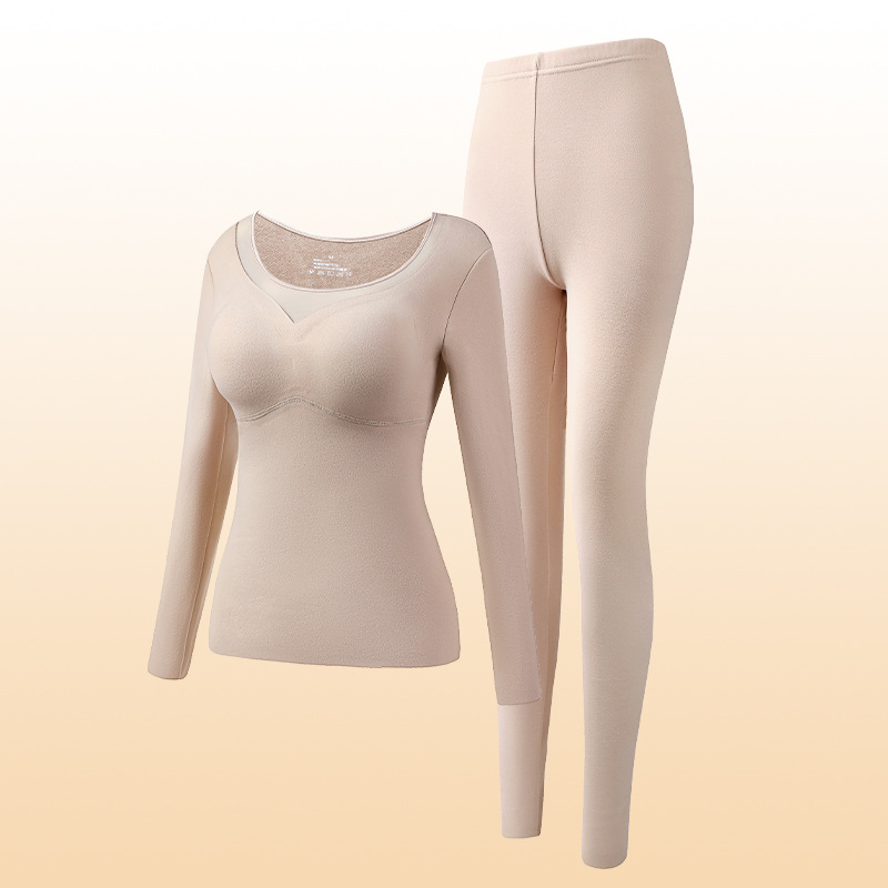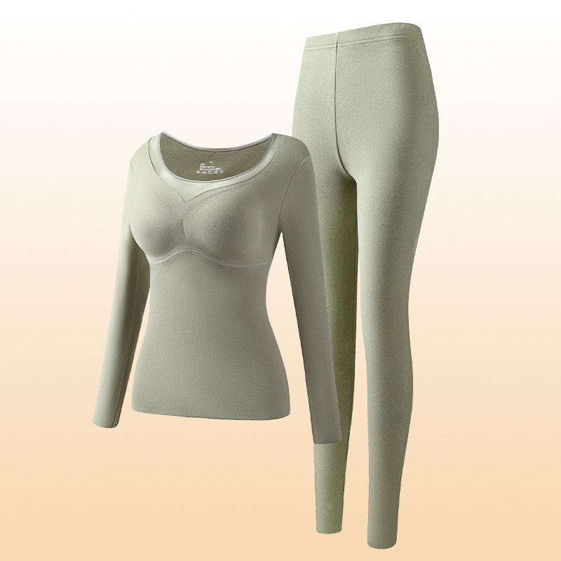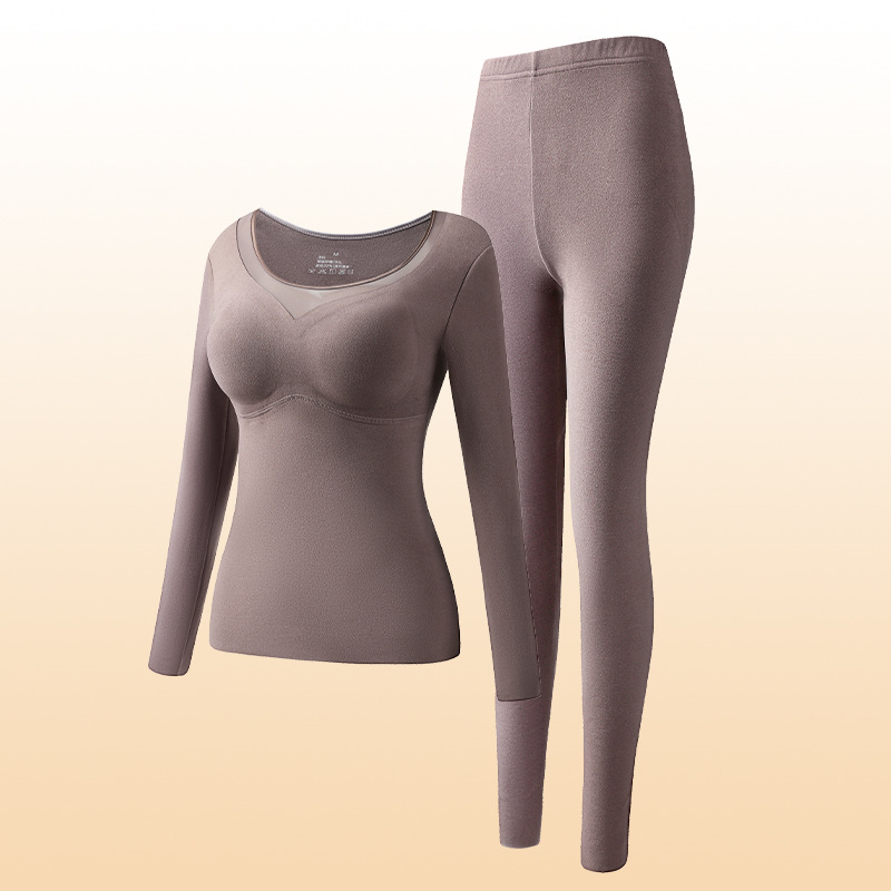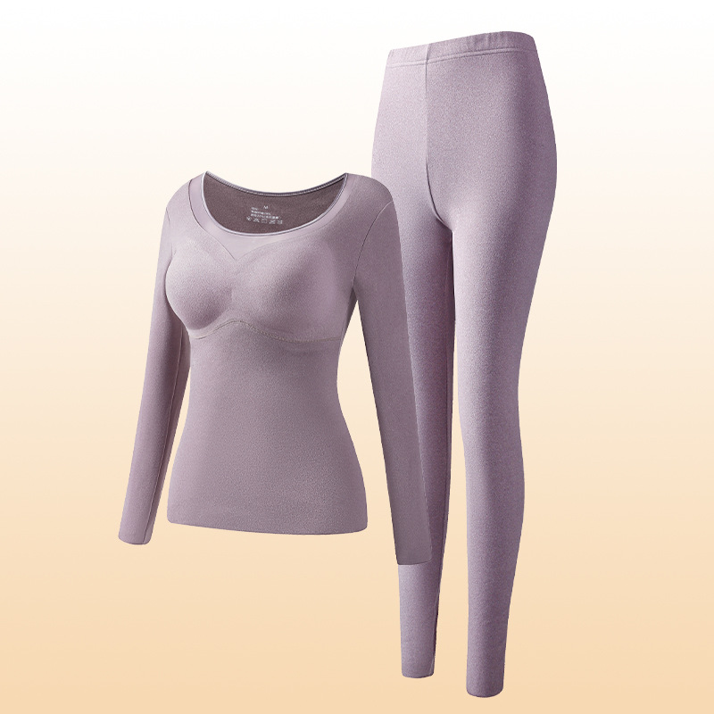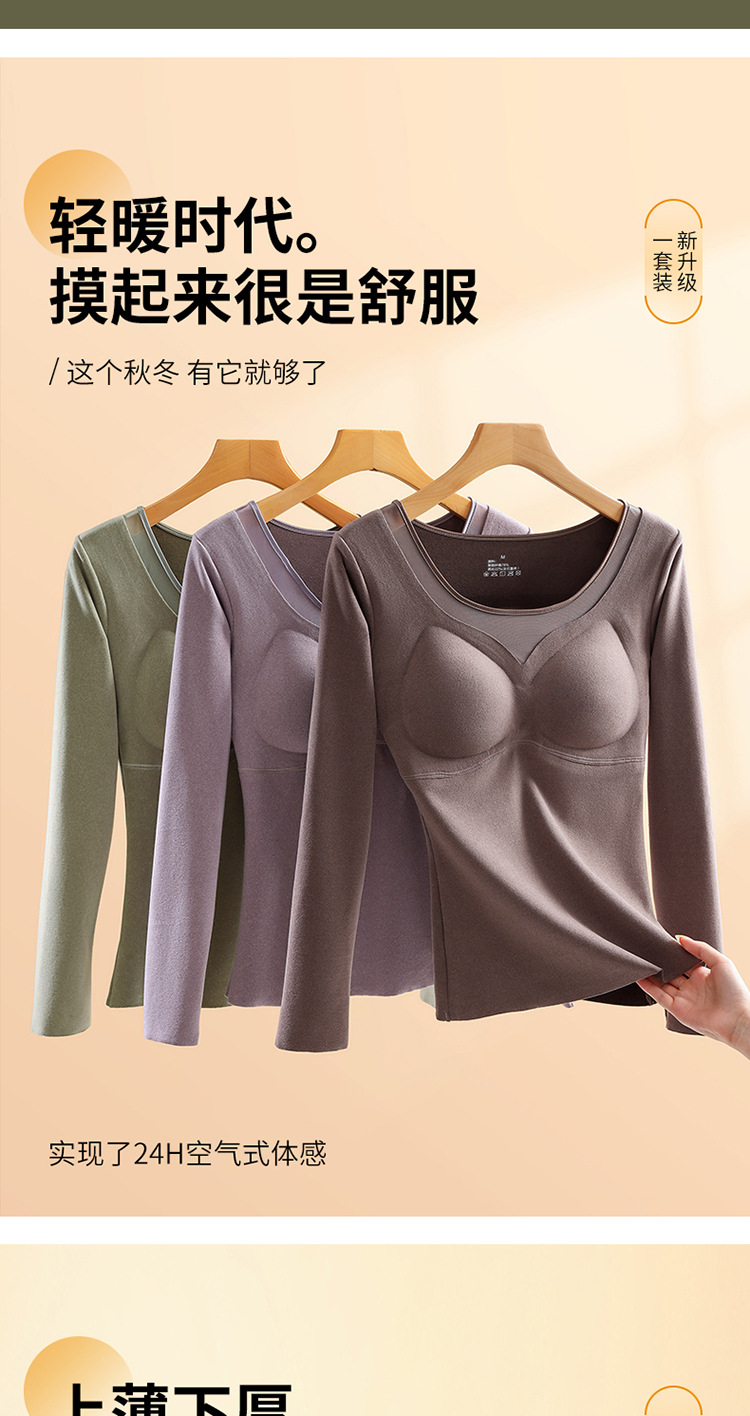 그래픽 가열 열 속옷 여자 세트 기모 흉부 패드 통합 기본 가을 옷과 겨울 바지