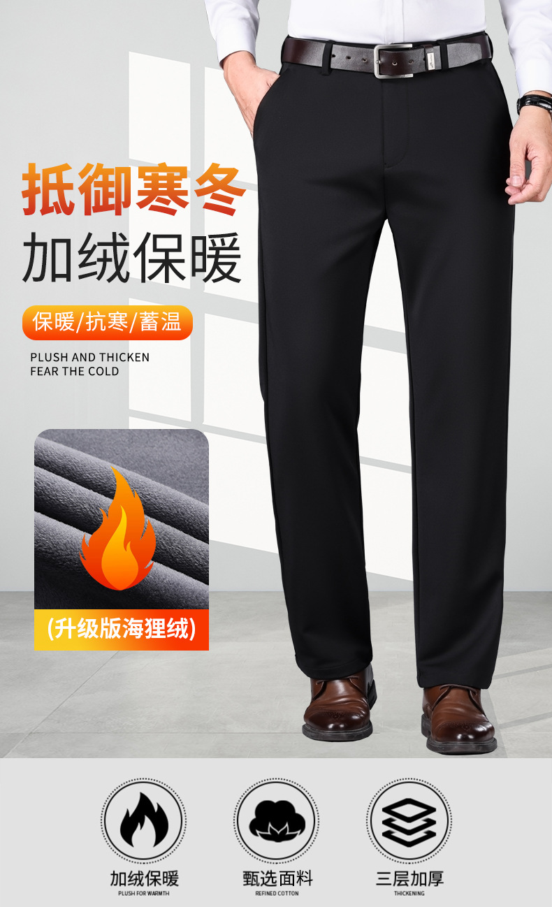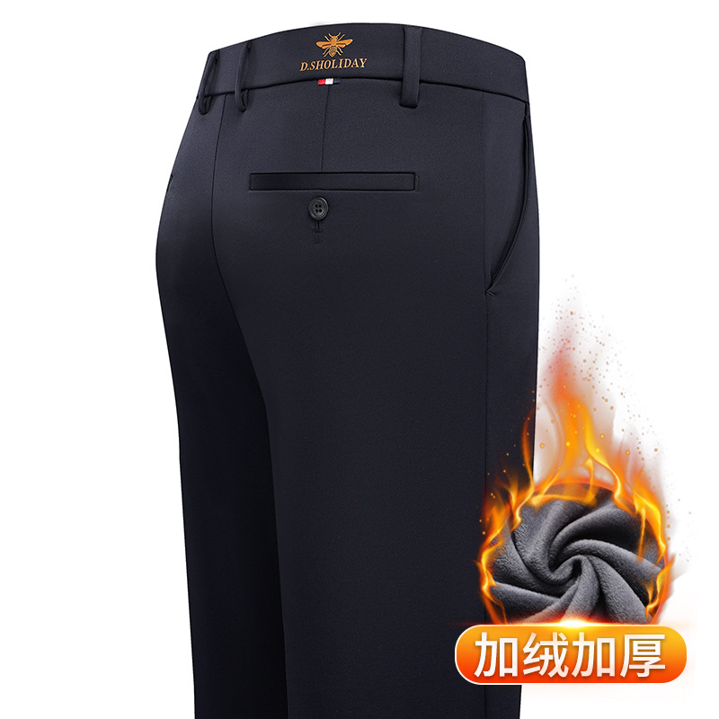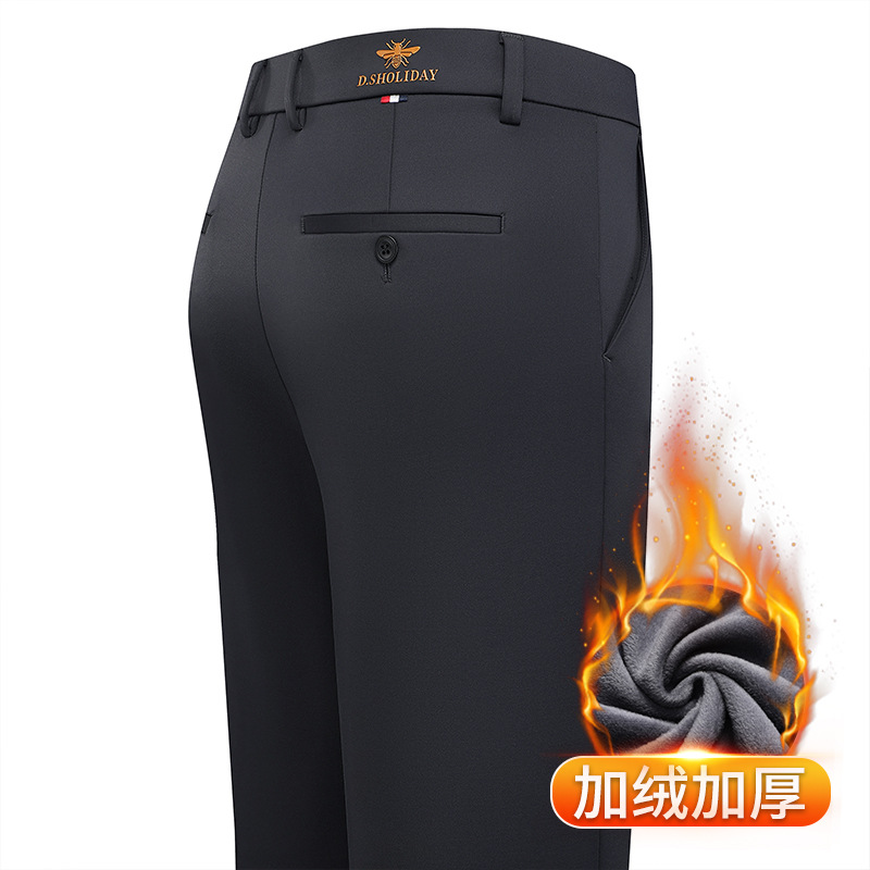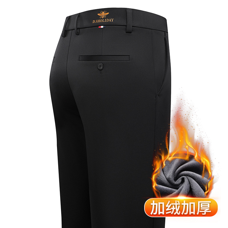 가을과 겨울 남자 바지 2024 새로운 높은 탄성 스트레이트 느슨한 바지 기모 남성 캐주얼 바지 비즈니스 바지스토어 가기