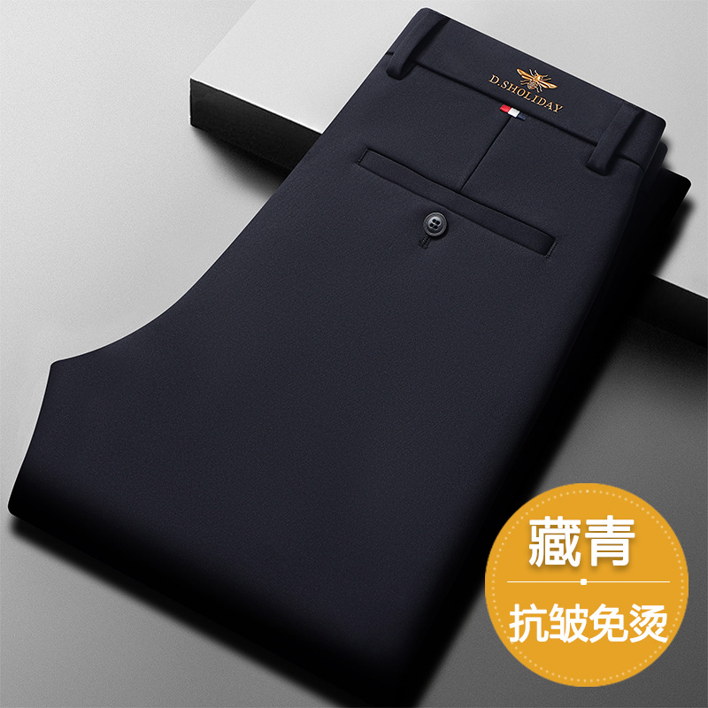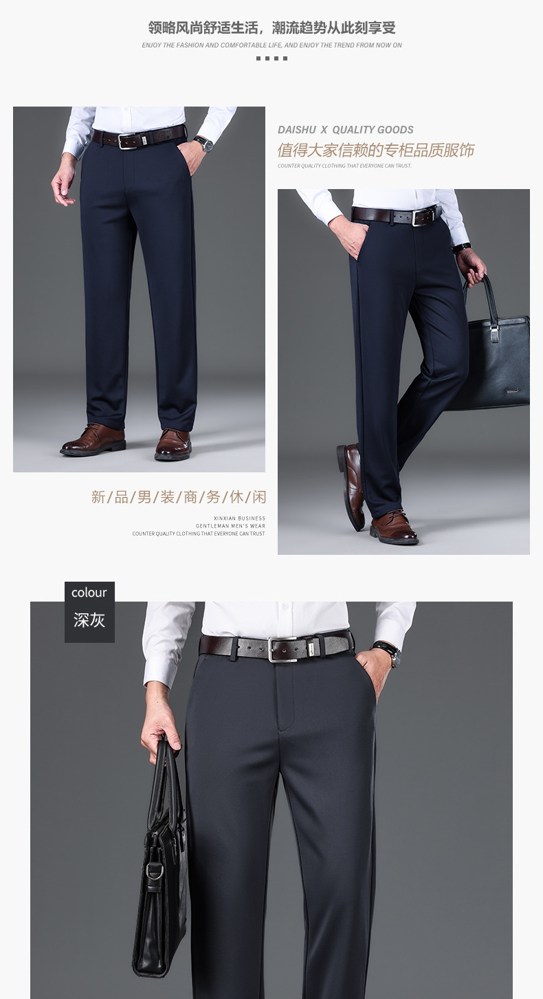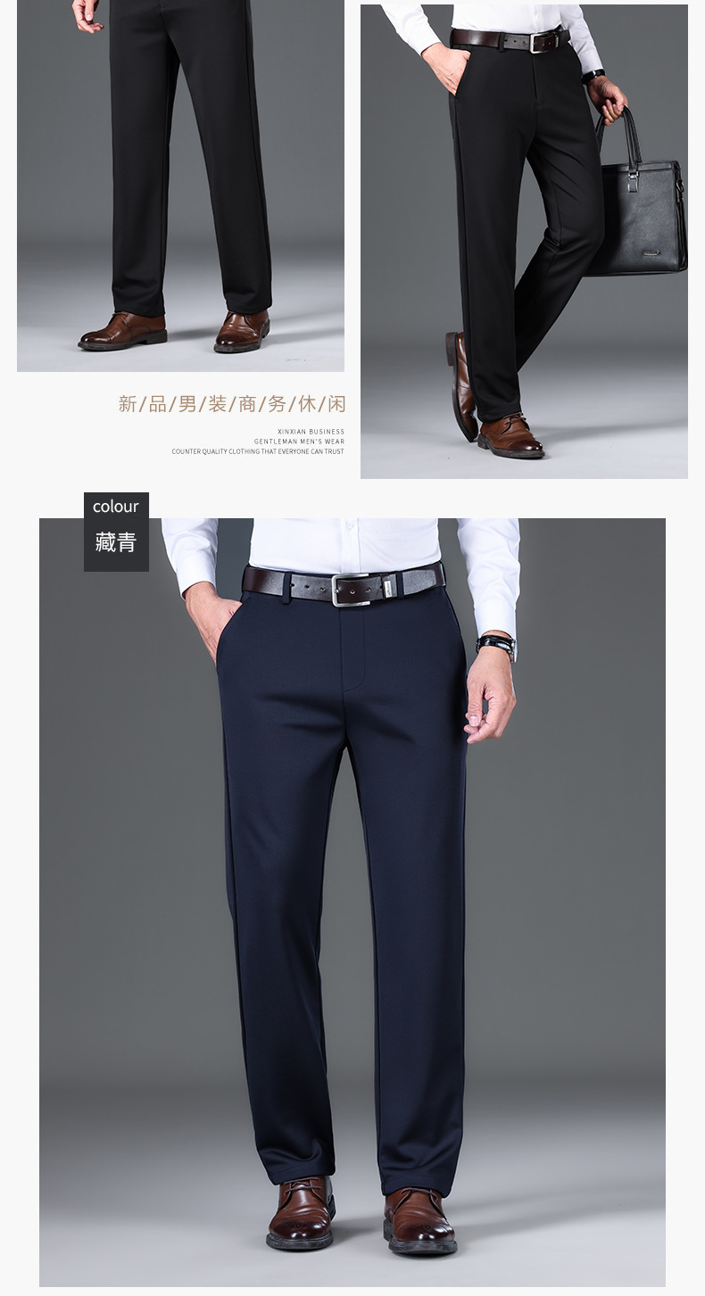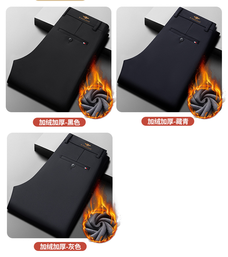 가을과 겨울 남자 바지 2024 새로운 높은 탄성 스트레이트 느슨한 바지 기모 남성 캐주얼 바지 비즈니스 바지스토어 가기