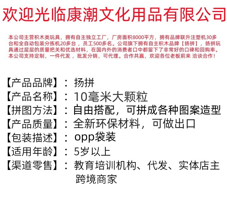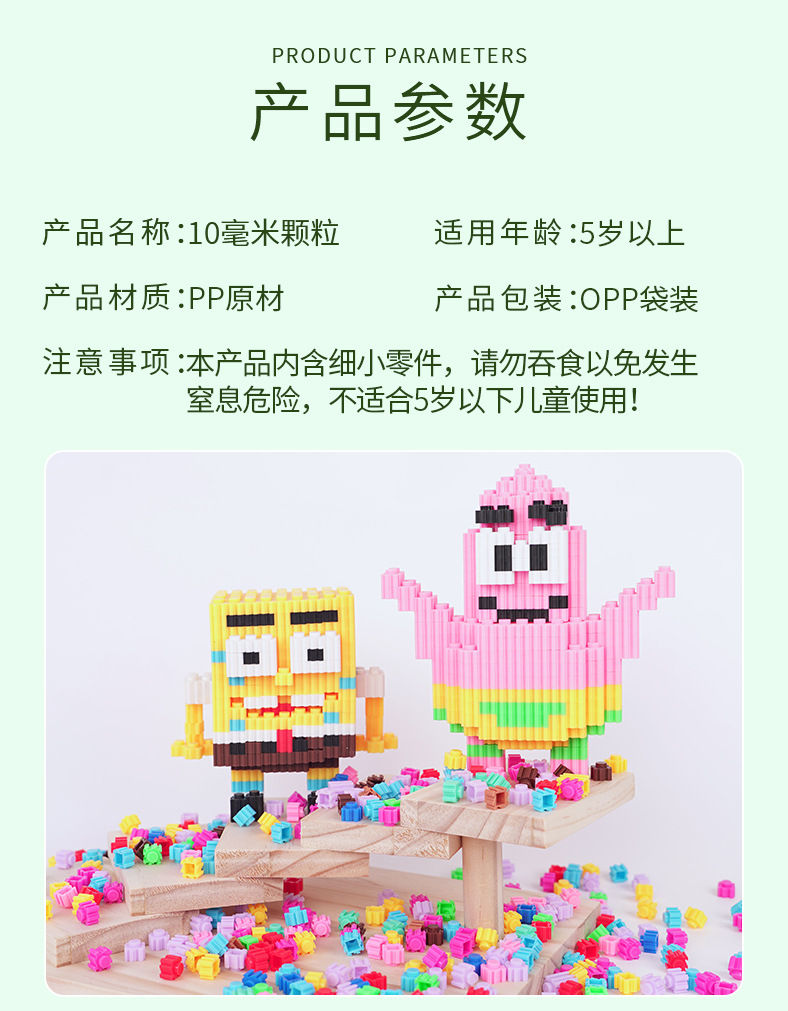공장 도매 10mm 벌크 대형 곡물 수제 DIY 어린이 3-16 세 퍼즐 조립 탠덤 빌딩 블록 장난감스토어 가기
