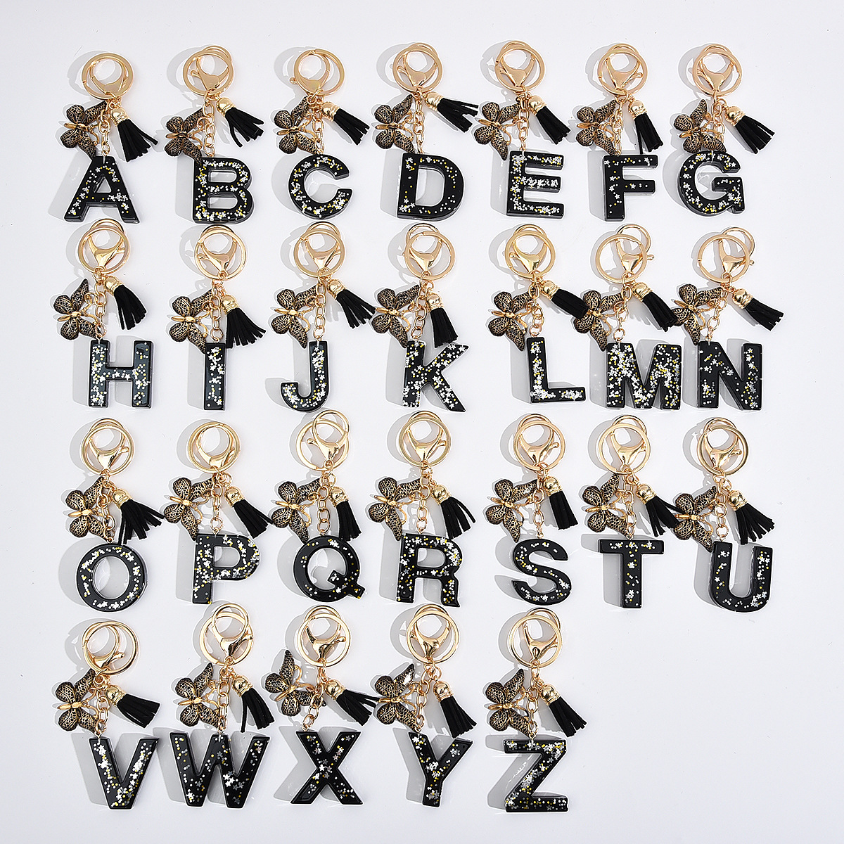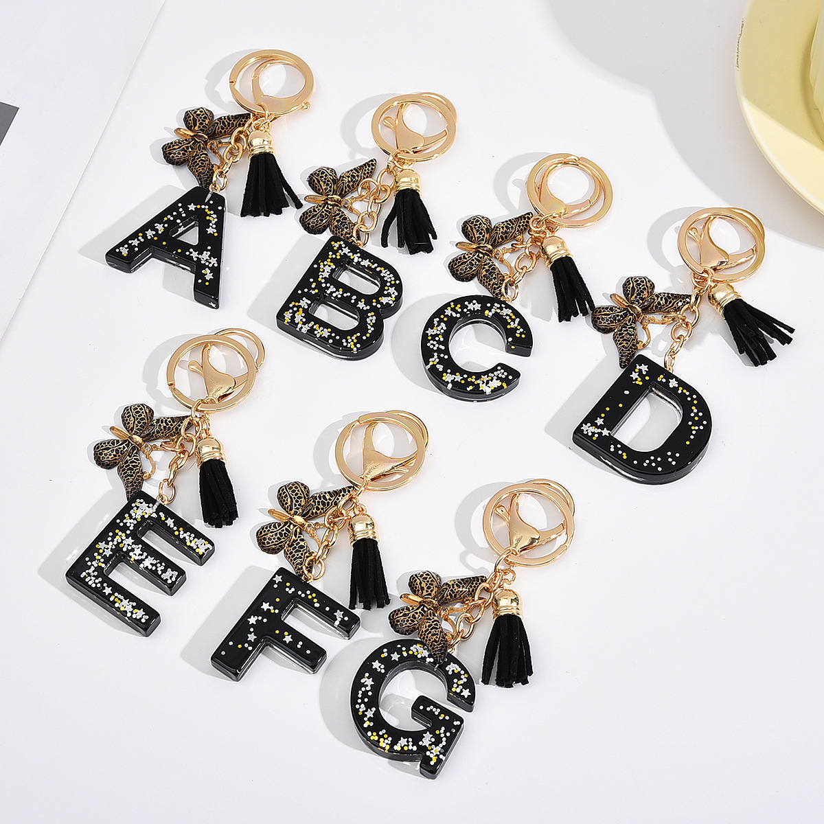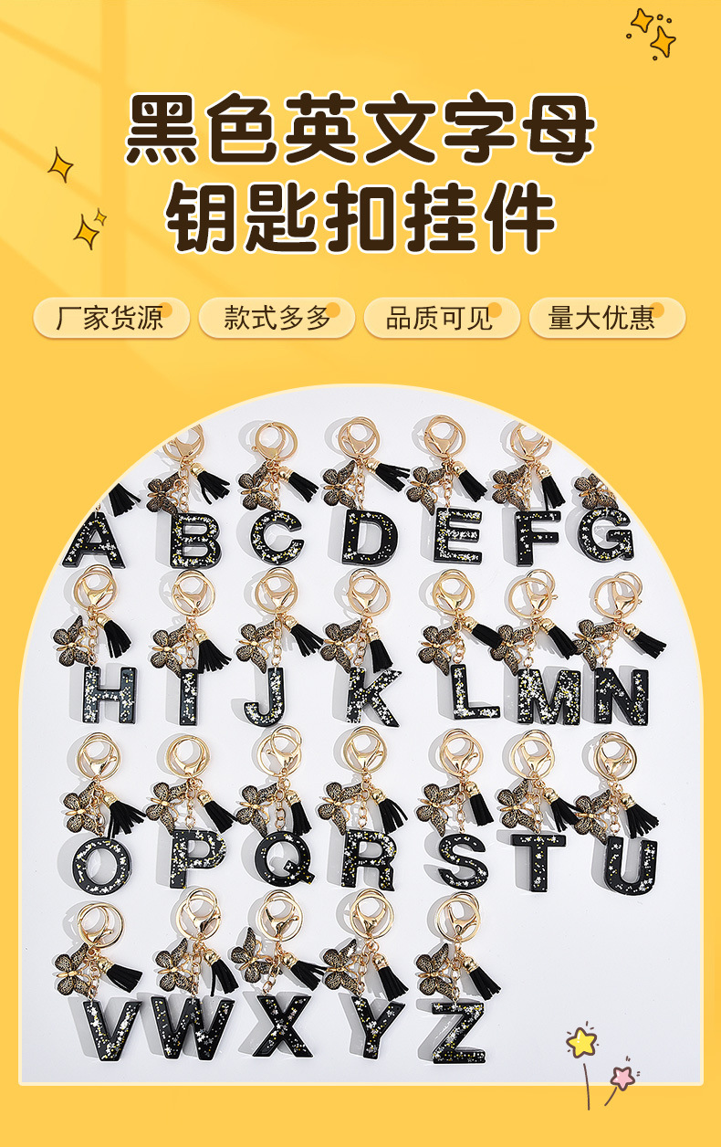 유럽과 미국의 새로운 수지 검은 영어 편지 자동차 키 체인 펜던트 나비 펜던트 술 키 체인 장식스토어 가기