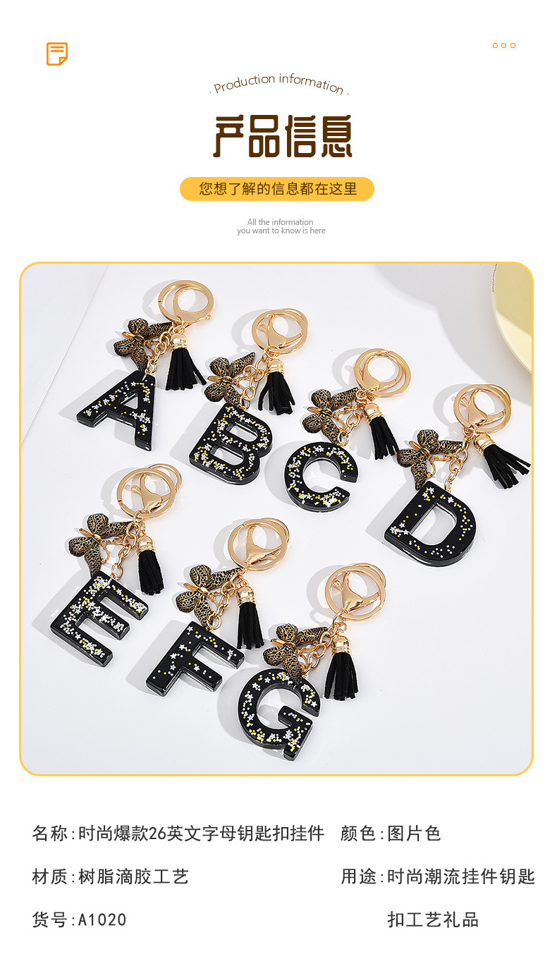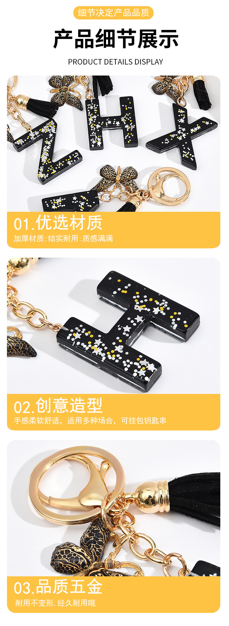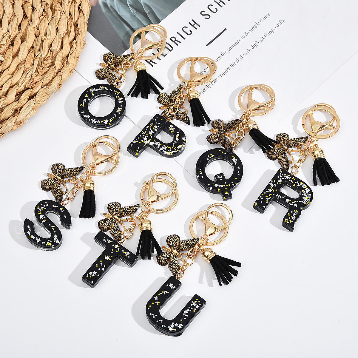 유럽과 미국의 새로운 수지 검은 영어 편지 자동차 키 체인 펜던트 나비 펜던트 술 키 체인 장식스토어 가기