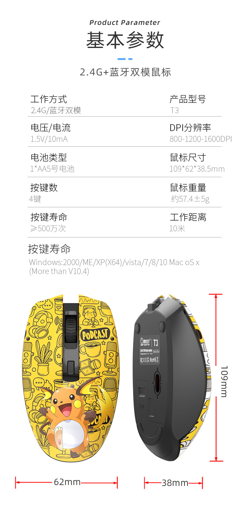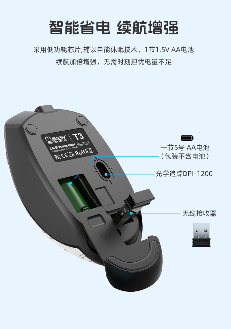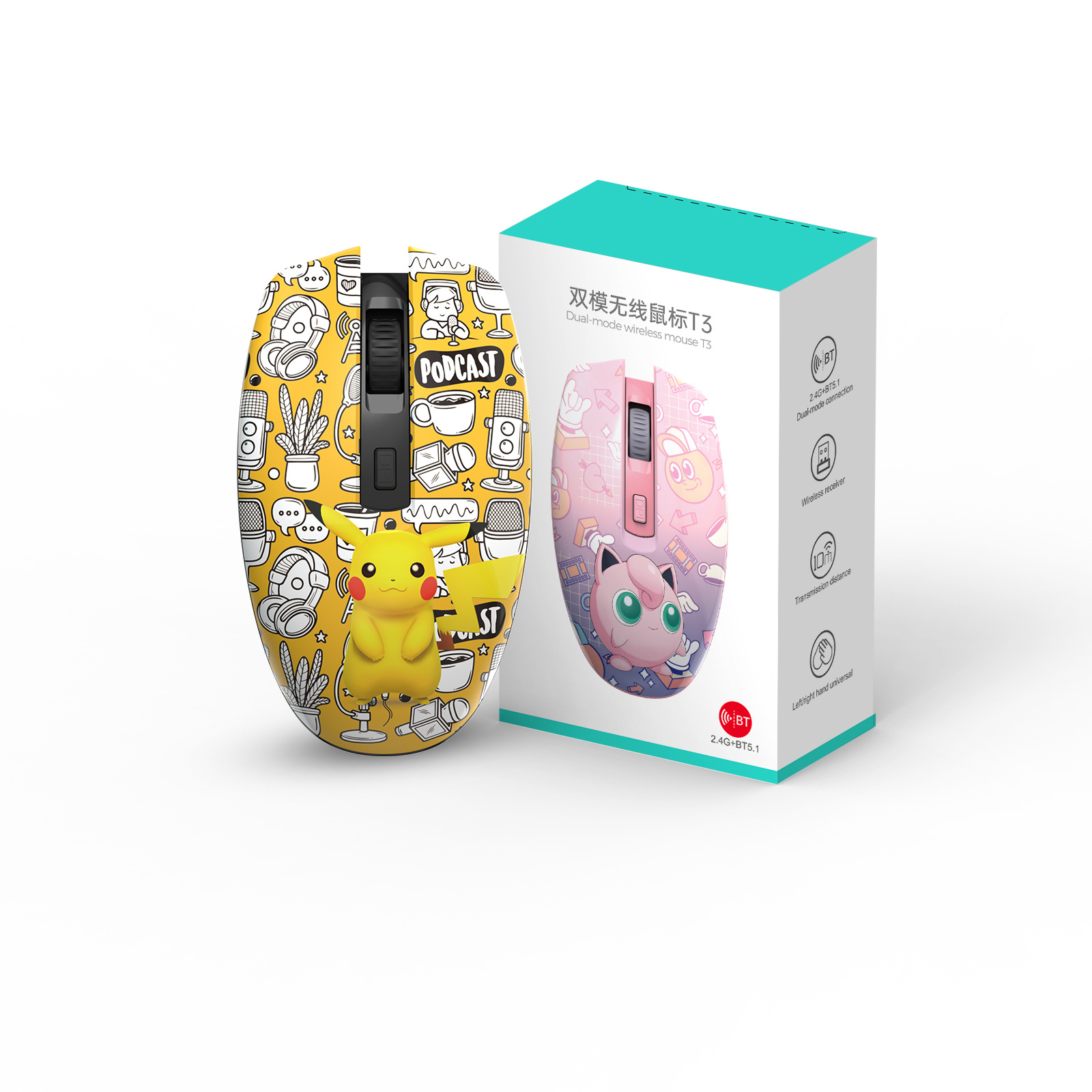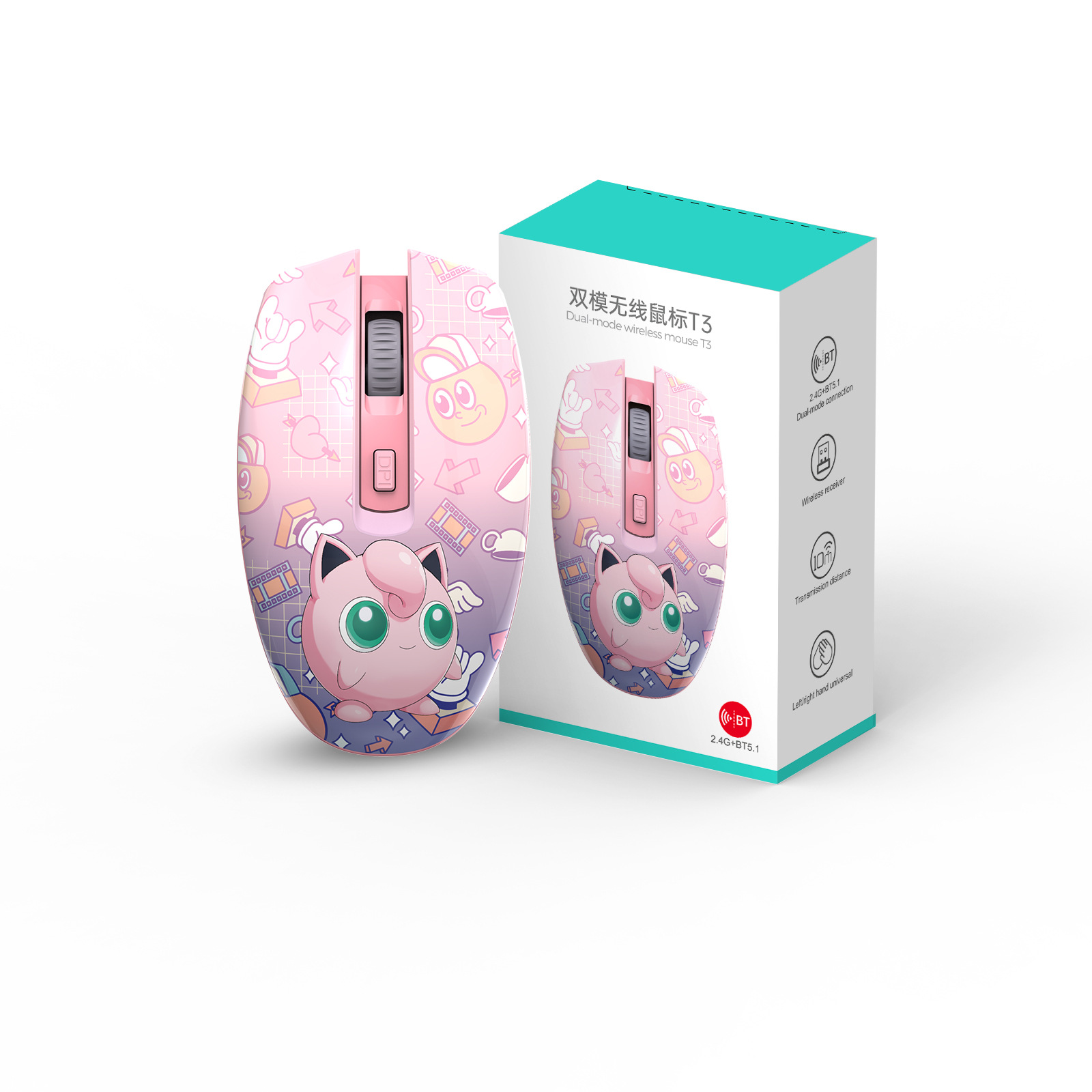 제조업체 무선 블루투스 무음 마우스 T3 페인트 3D 만화 오피스 노트북 듀얼 모드 컴퓨터 광 마우스스토어 가기