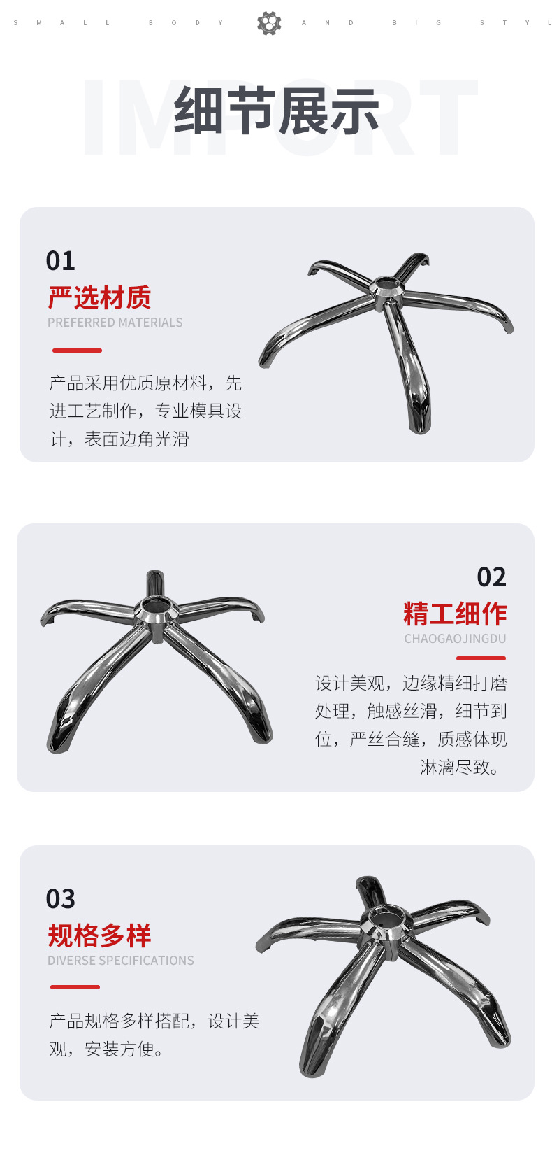 두꺼운 회전 의자 베이스 전기 도금 5 성급 삼각대 컴퓨터 의자 5 성급 발 회전 의자 섀시 사무실 의자 액세서리 도매