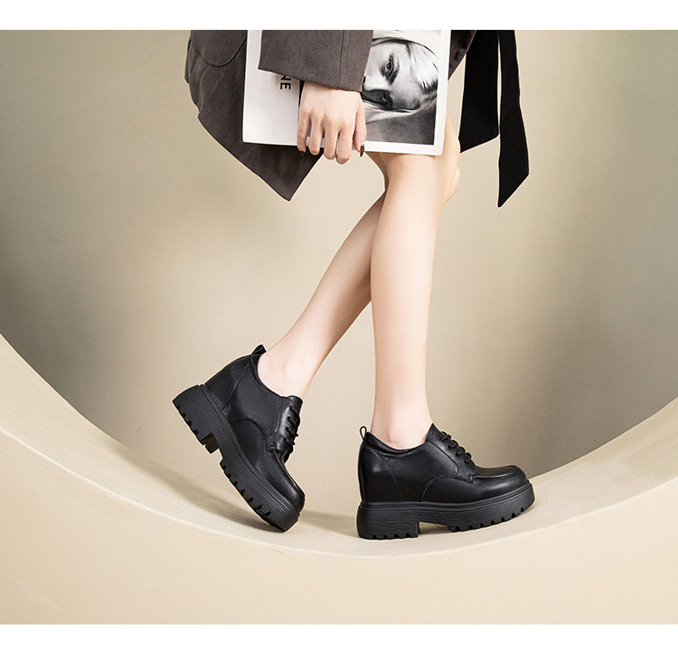 2026 봄/가을 신상품 천연가죽 로퍼, 두꺼운 밑창, 다용도, 영국풍, 키높이, 발이 피곤하지 않은 여성 가죽 신발스토어 가기