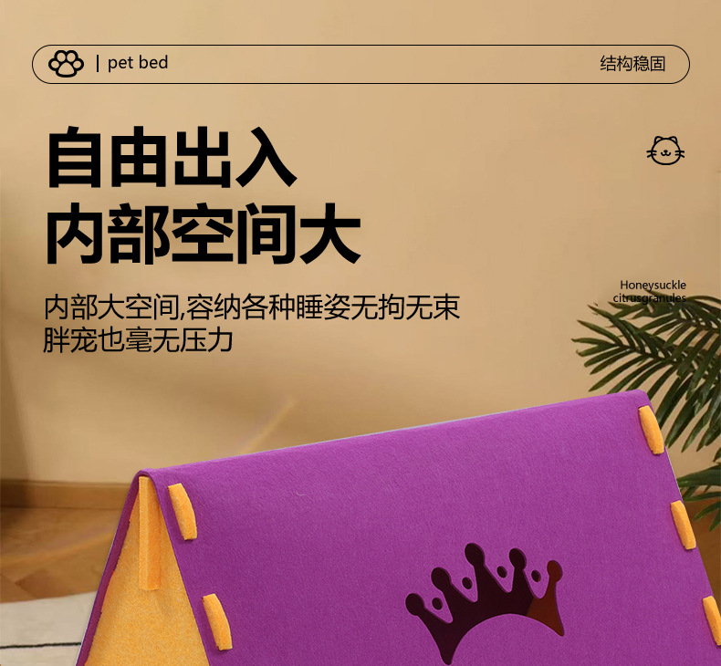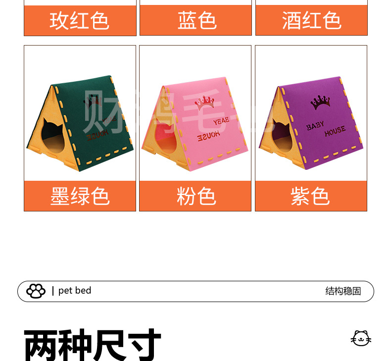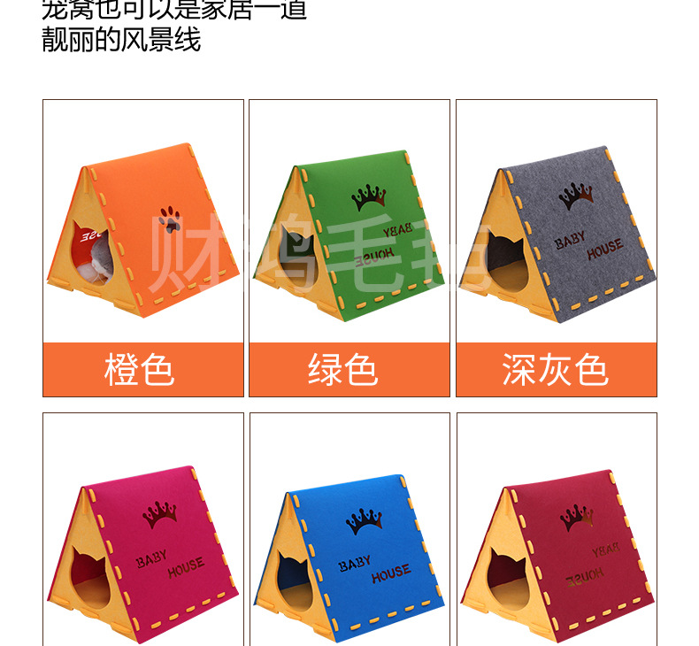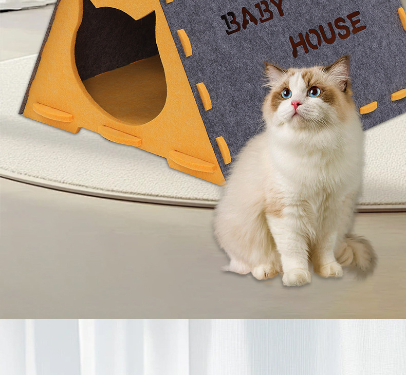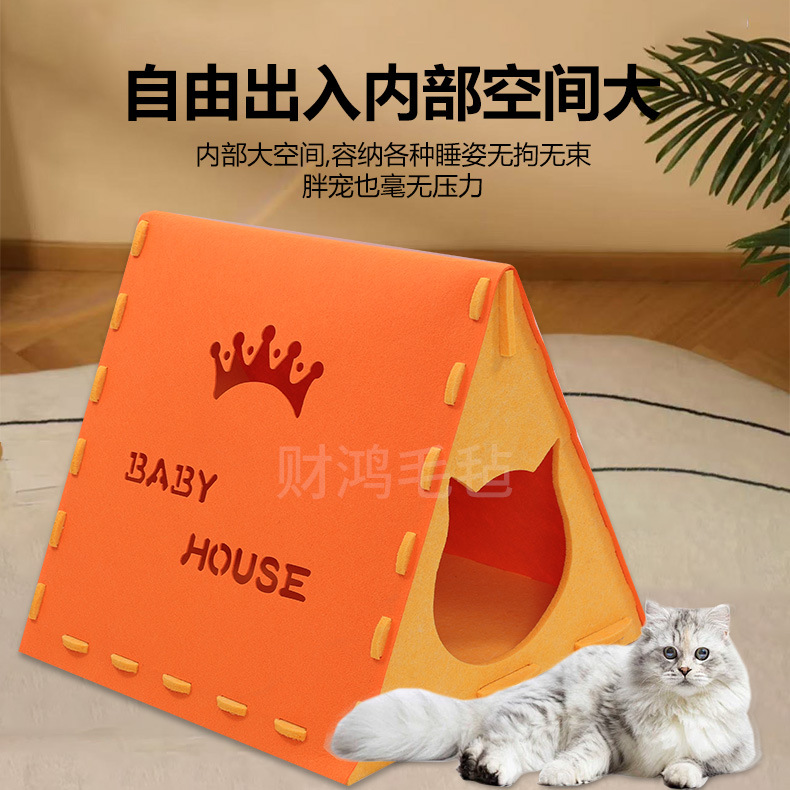 고양이 둥지 펠트 헝겊 삼각형 고양이 둥지 겨울 따뜻한 반 폐쇄 사계절 유니버설 애완 동물 고양이 텐트 분리 가능한 고양이