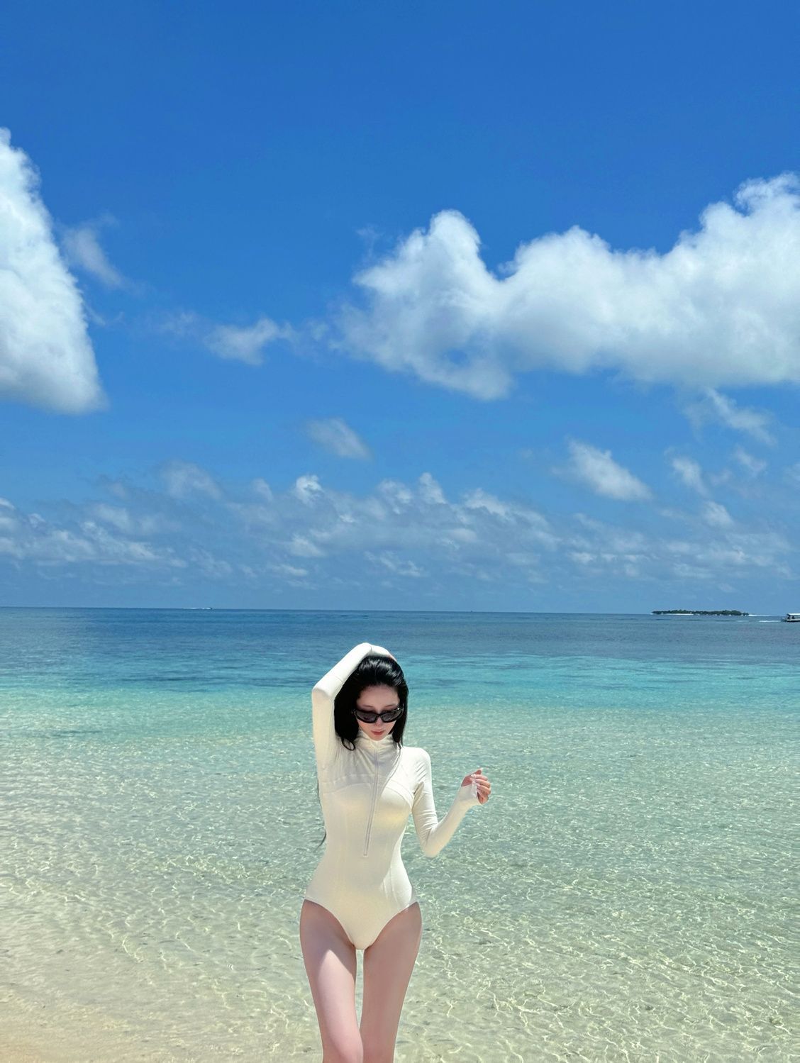 선 스크린 스노클링 결합 된 삼각형 긴 소매 다이빙 세트 수영 세트 여자 해파리 세트 수영 세트 여자 뉴 화이트 보수