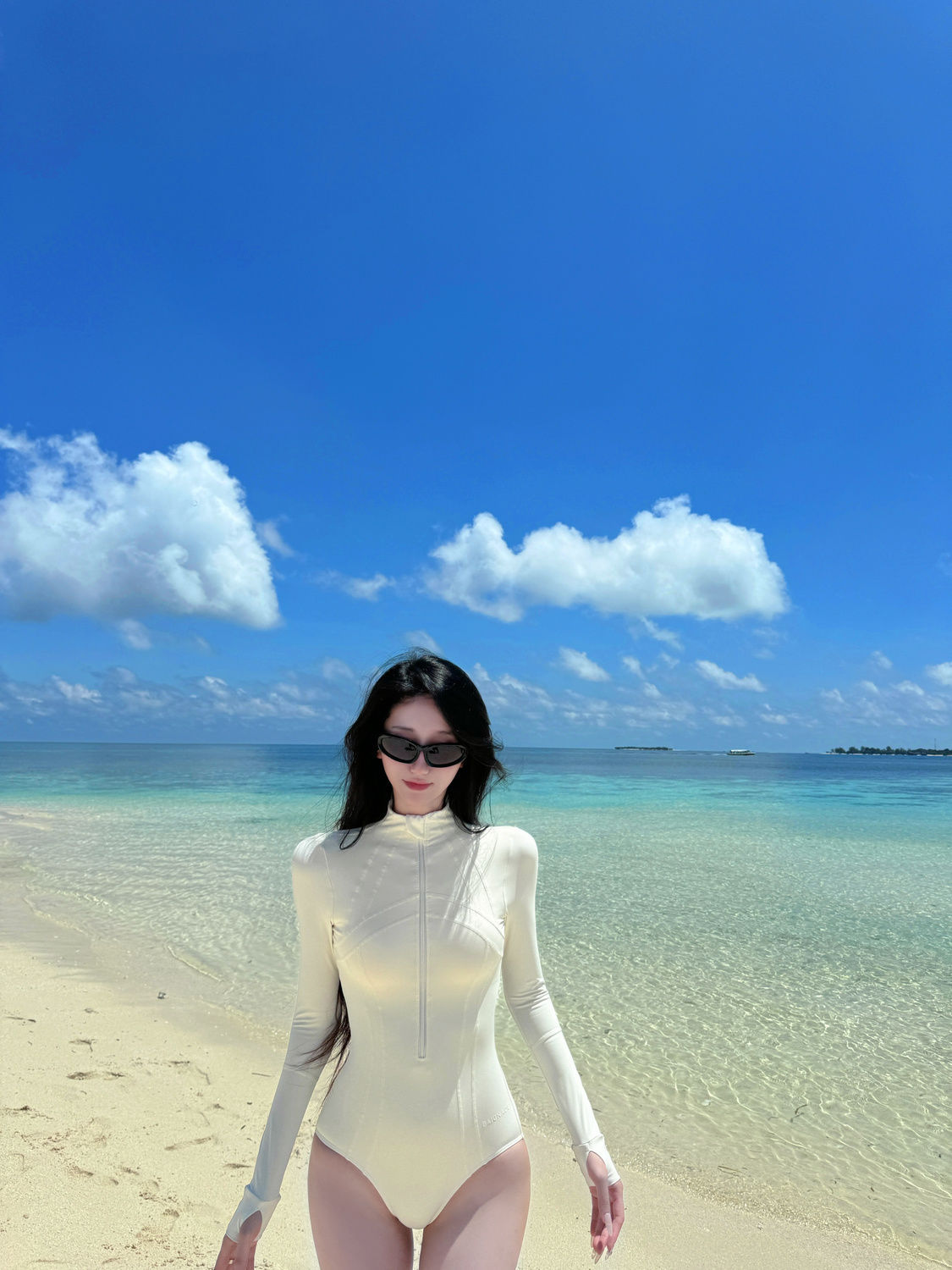 선 스크린 스노클링 결합 된 삼각형 긴 소매 다이빙 세트 수영 세트 여자 해파리 세트 수영 세트 여자 뉴 화이트 보수스토어 가기