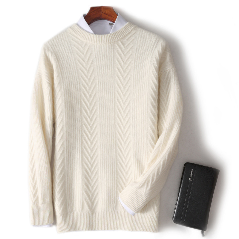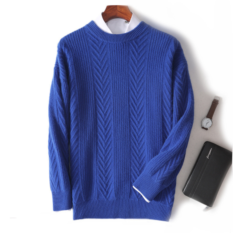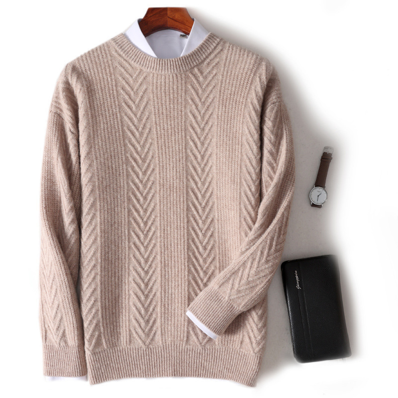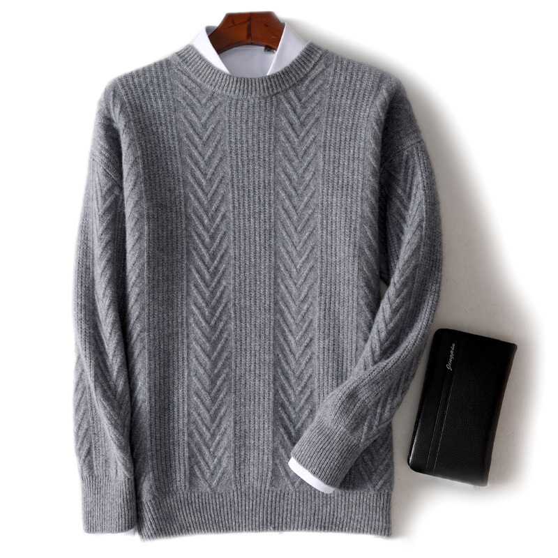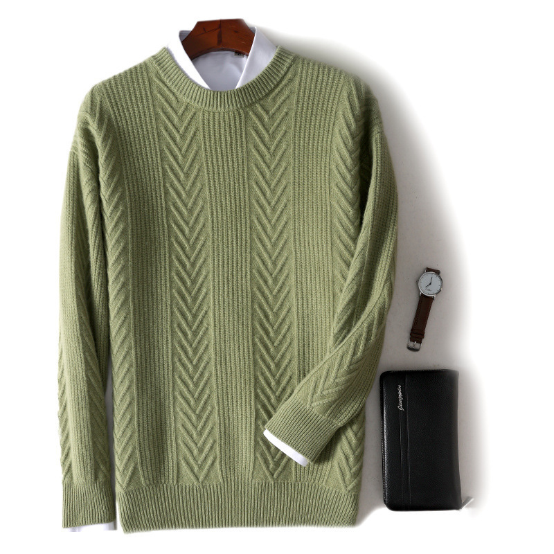 남자 순수 양모 가을과 겨울 새로운 남자 승무원 두꺼운 스웨터 캐주얼 비즈니스 니트 베이스 캐시미어 스웨터