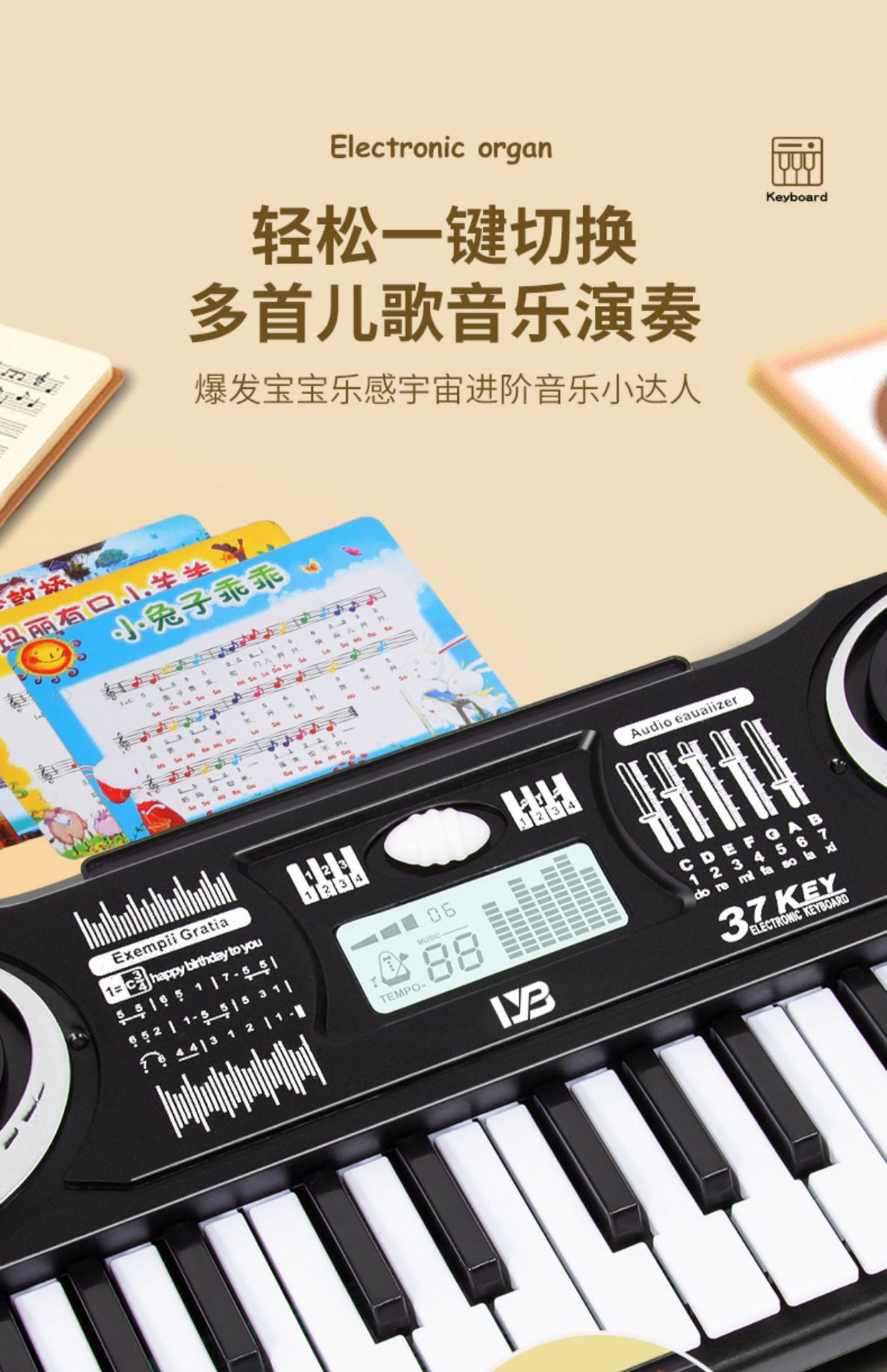 아마존 37키 전자 키보드 어린이 장난감 3-6세용 악기 피아노 선물 도매 계몽 어린이 교육용 장난감스토어 가기