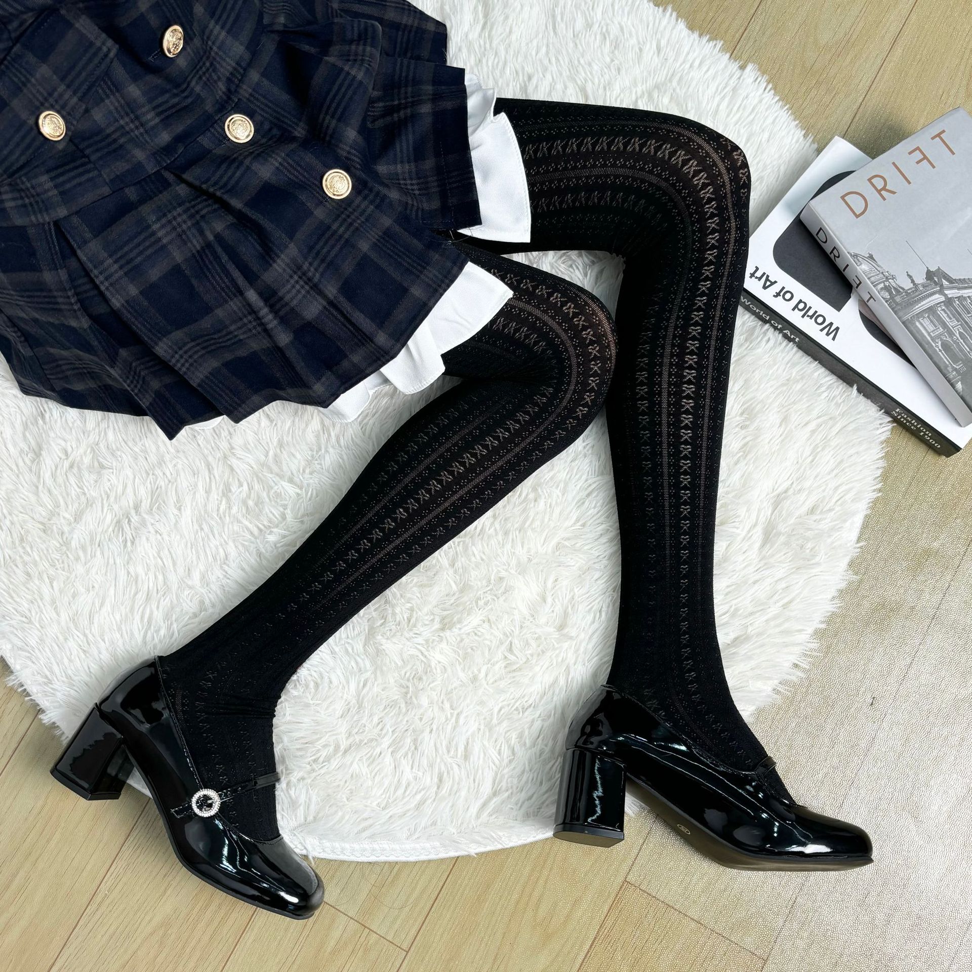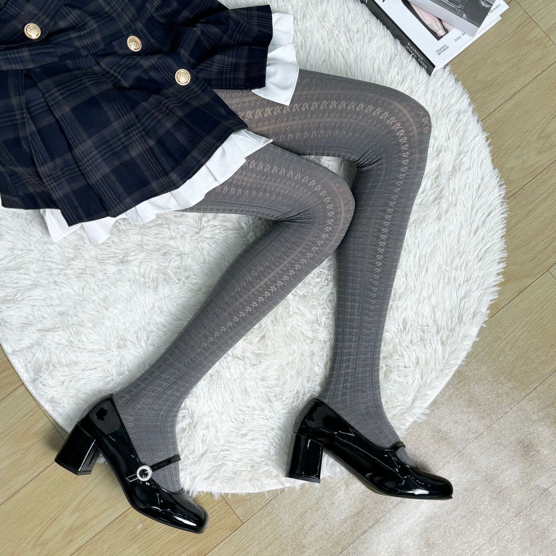 레트로 그레이 팬티 스타킹 가을과 겨울 트위스트 벨벳베이스 스타킹 밀 스파이크 패턴 라이트 레그 아티팩트 블랙 실크 스타킹 여성용