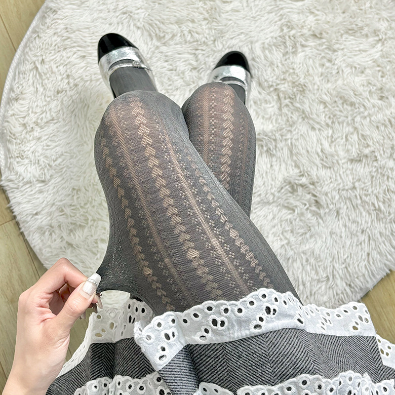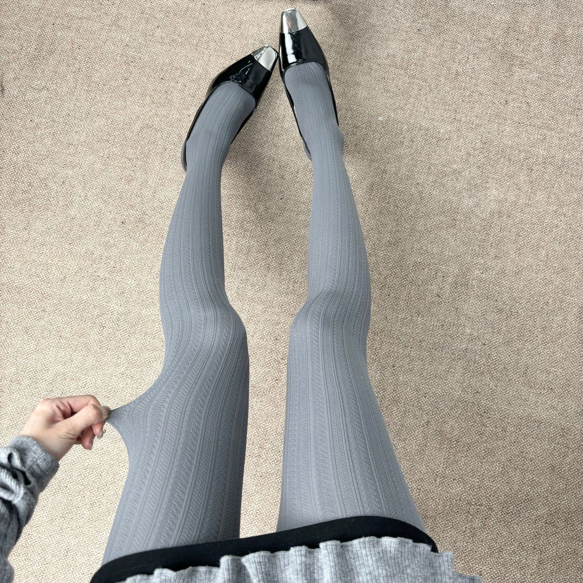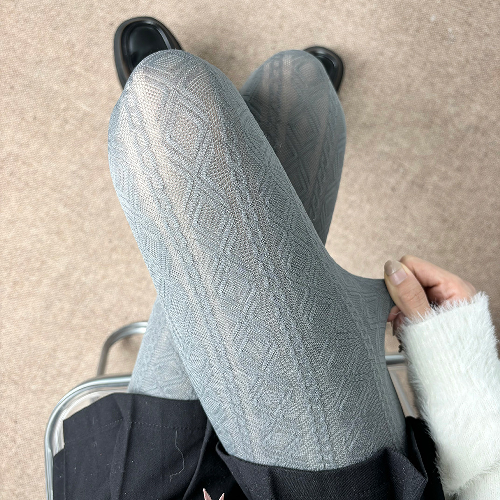 레트로 그레이 팬티 스타킹 가을과 겨울 트위스트 벨벳베이스 스타킹 밀 스파이크 패턴 라이트 레그 아티팩트 블랙 실크 스타킹 여성용스토어 가기