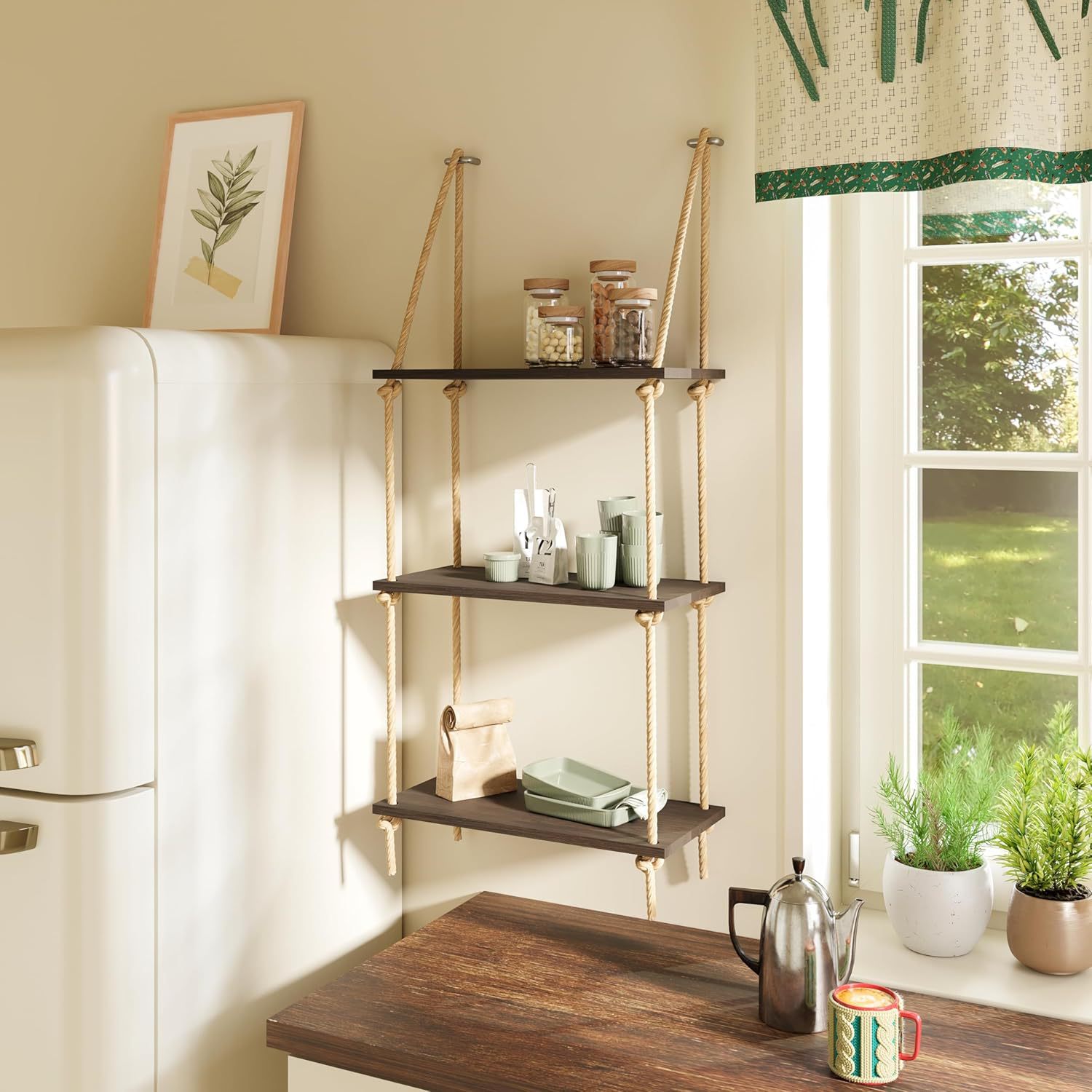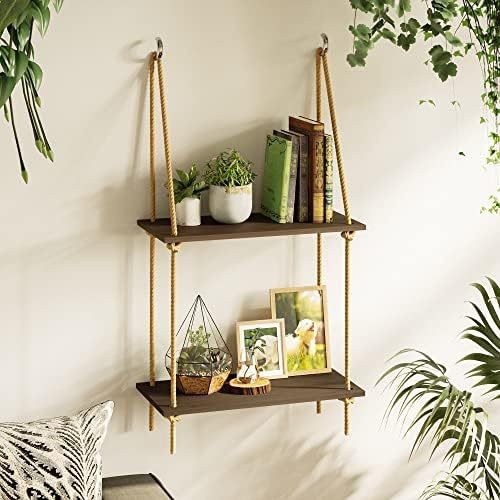 펀치없는 스토리지 랙 대마 로프 파티션 나무 책장 벽 장식 랙 라미네이트 거실 벽걸이 스토리지 랙스토어 가기
