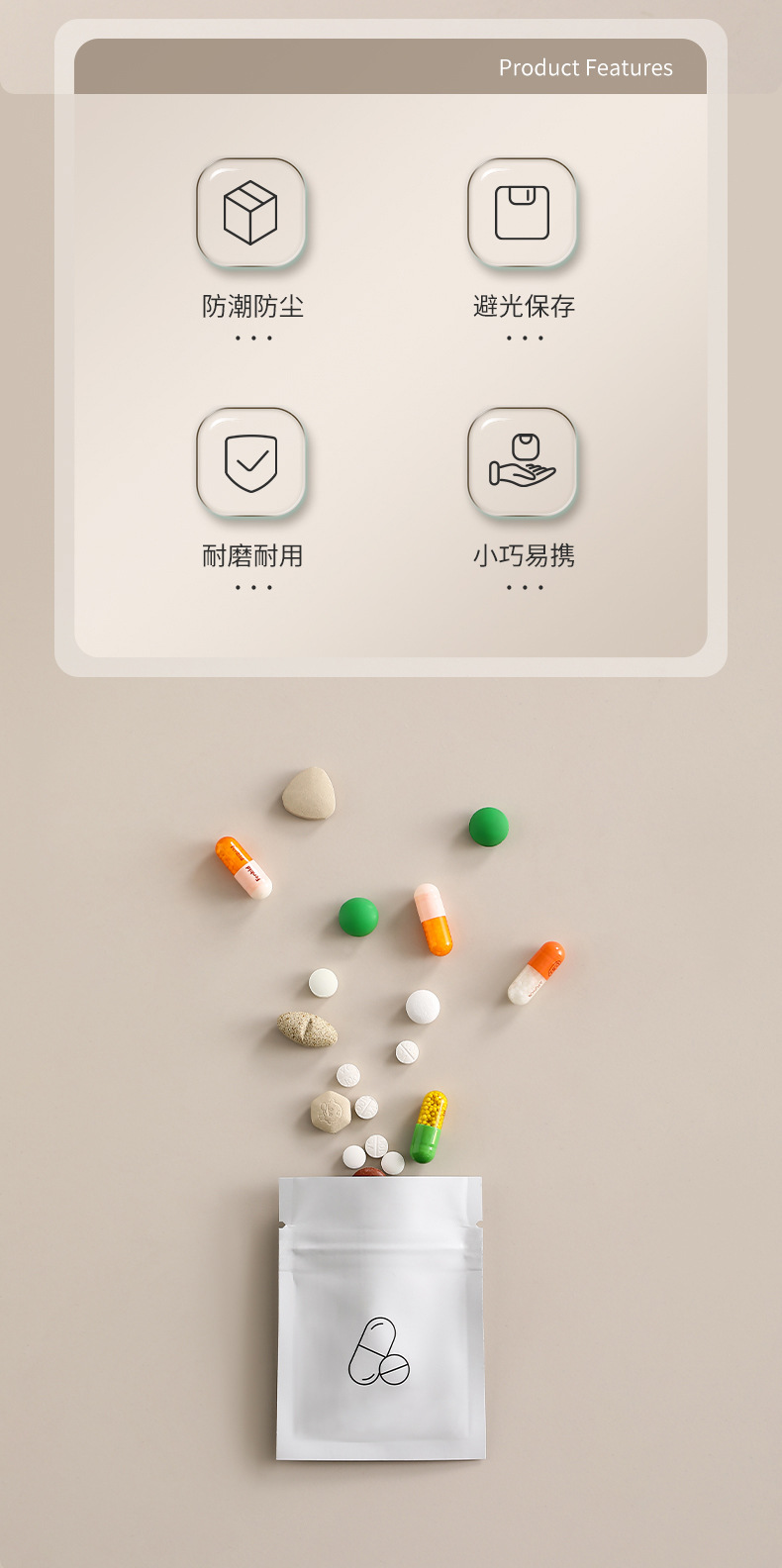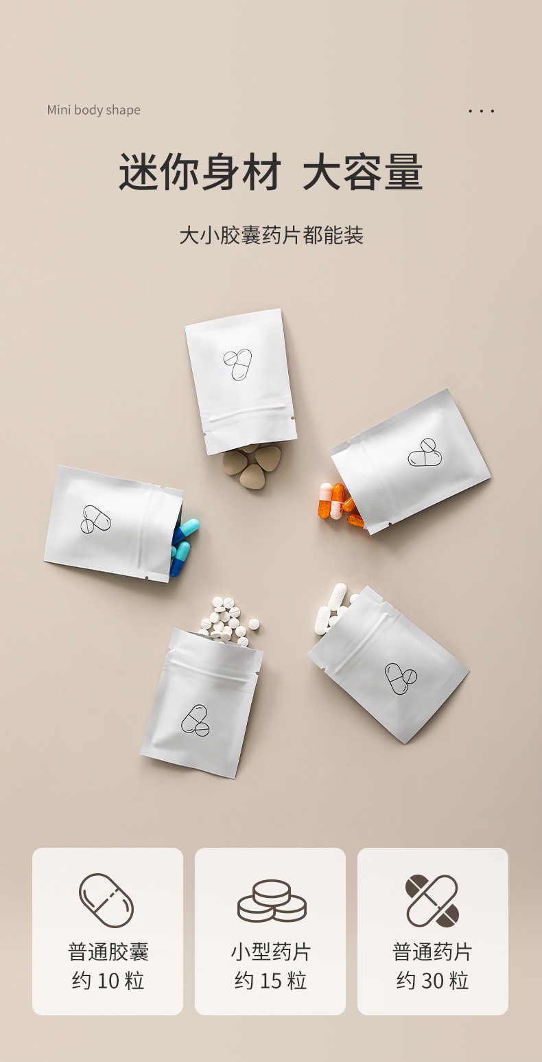 일본 파소라 일회용 작은 약 가방 휴대용 밀봉 된 가방 알약 빛 방지 휴대용 의약 자체 밀봉 가방스토어 가기