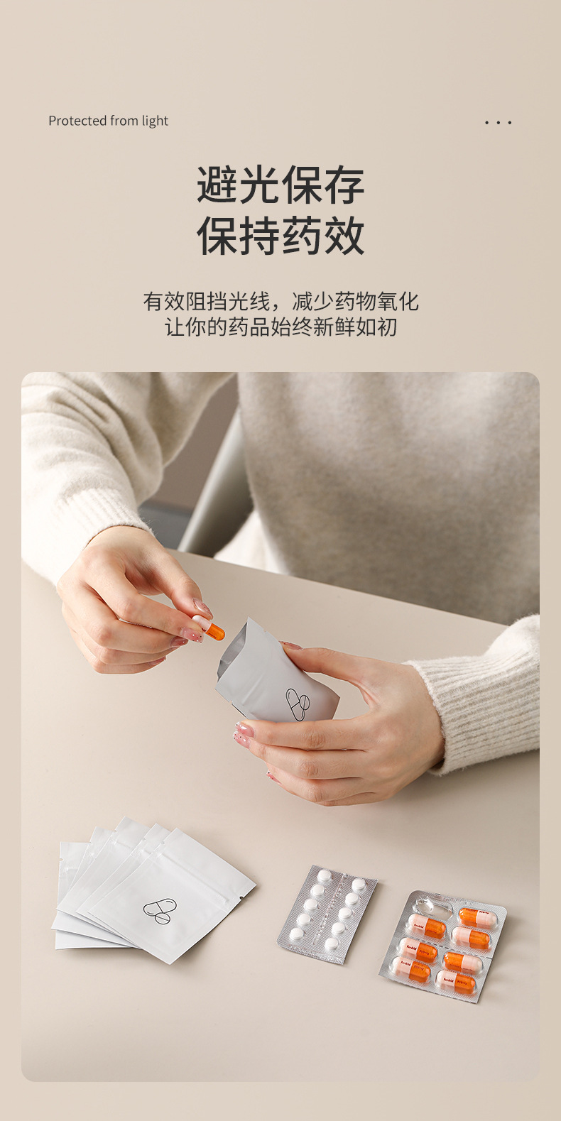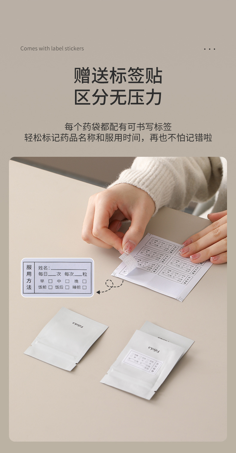 일본 파소라 일회용 작은 약 가방 휴대용 밀봉 된 가방 알약 빛 방지 휴대용 의약 자체 밀봉 가방
