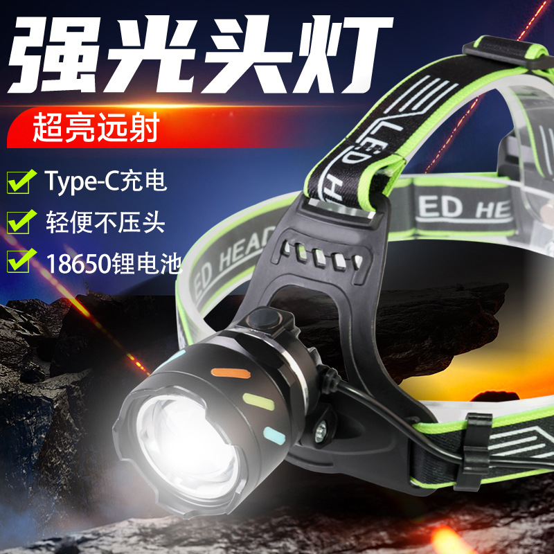 국경 새로운 야외 led 슈퍼 밝은 헤드 라이트 usb 충전식 텔레스코픽 줌 다채로운 강한 빛 머리 착용 작업 빛스토어 가기