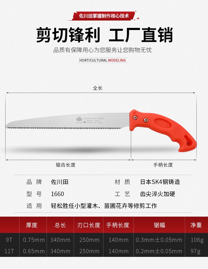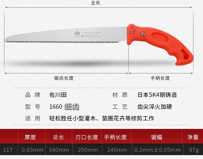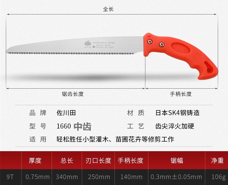 Sagawa Tian Japan 수입 sk4 스틸 홈 작은 휴대용 과일 나무 가지 치기 목공 톱 1660B 미세 치아 원본스토어 가기