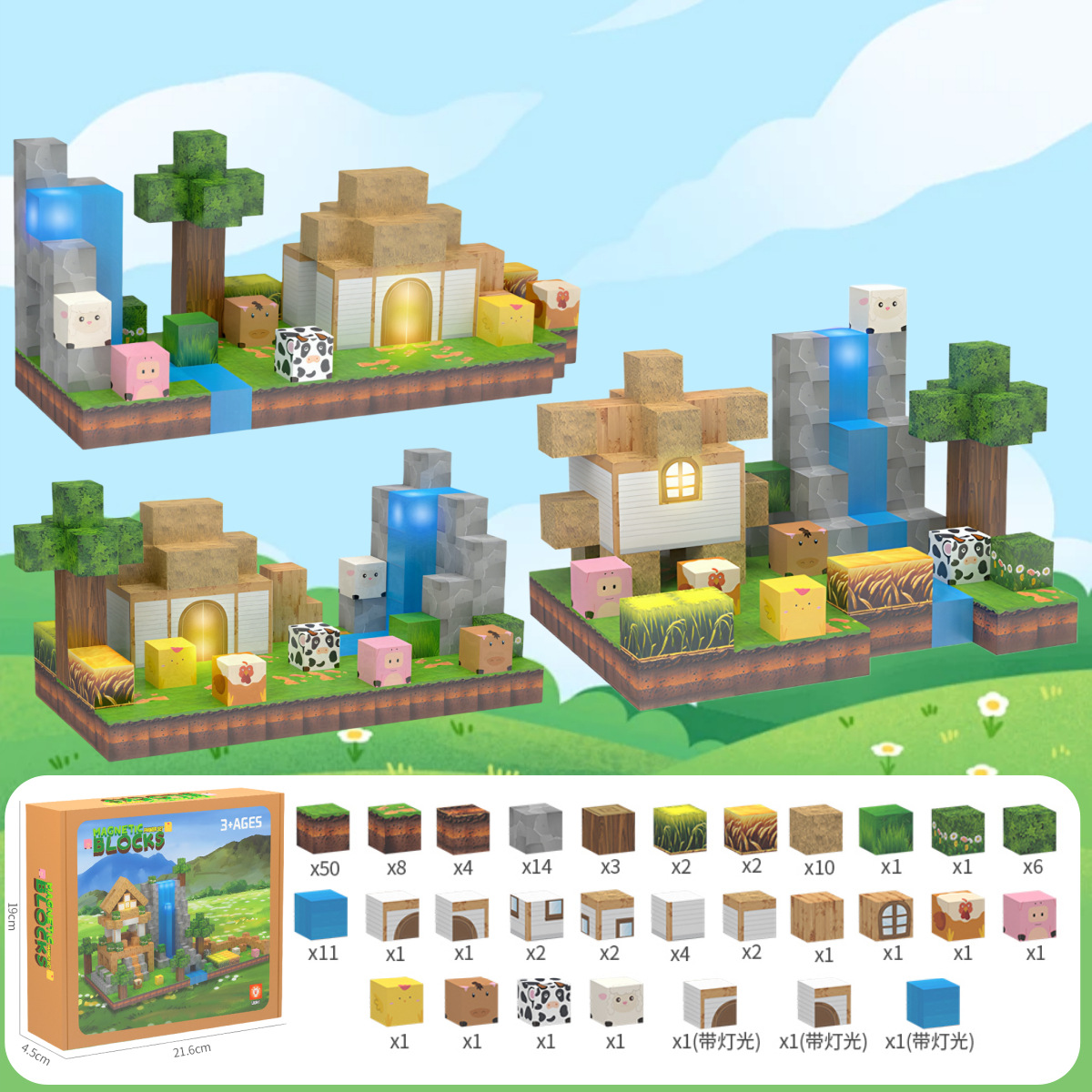• 고강도 자기발광모델 [농장 138개 입자에는 발광입자 3개가 포함되어 있습니다] 영어 컬러박스