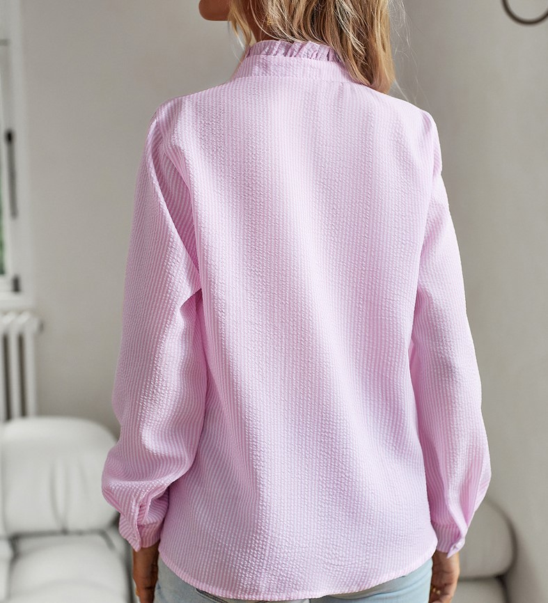 새로운 2024 국경 유럽과 미국의 재고 여성의 가을 셔츠 아마존 카디건 러플 긴 소매 버블 탑스토어 가기