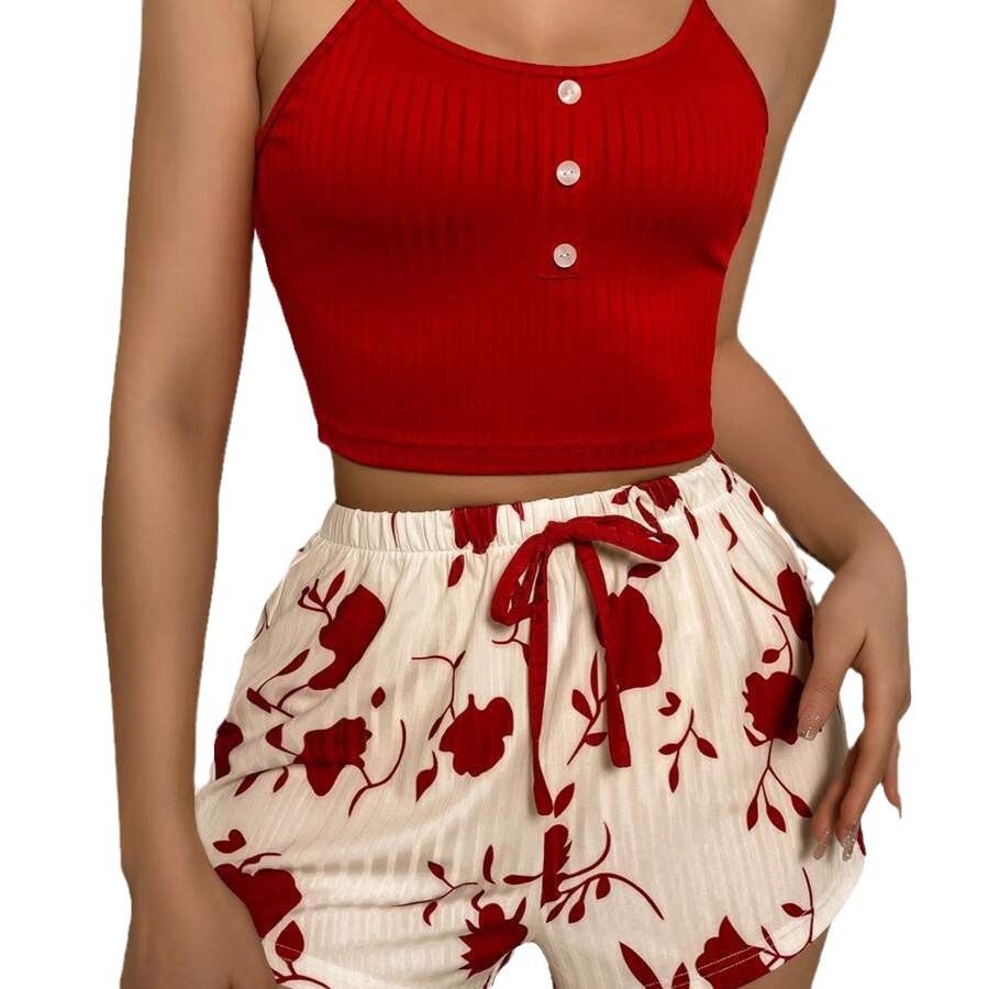 국경 간 뜨거운 판매 여성 홈 의류 인쇄 슬링 반바지 캐주얼 섹시 아웃웨어 유럽과 미국 여성 파자마 도매