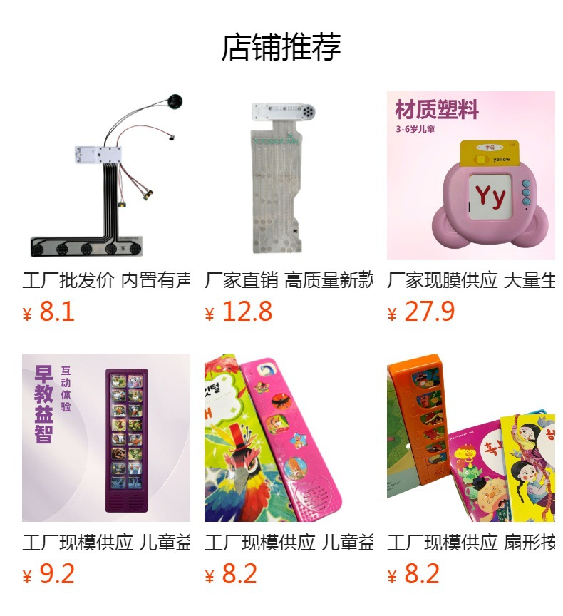 深圳市腾鑫发科技有限公司主要经营早教书发声器、玩具等产品专业生产加工的公司,拥有完整、科学的质量管理体系。深圳市腾鑫发科技有限公司的诚信、实力和产品质量获得业界的认可。欢迎各界朋友莅临参观指导和业务洽谈。