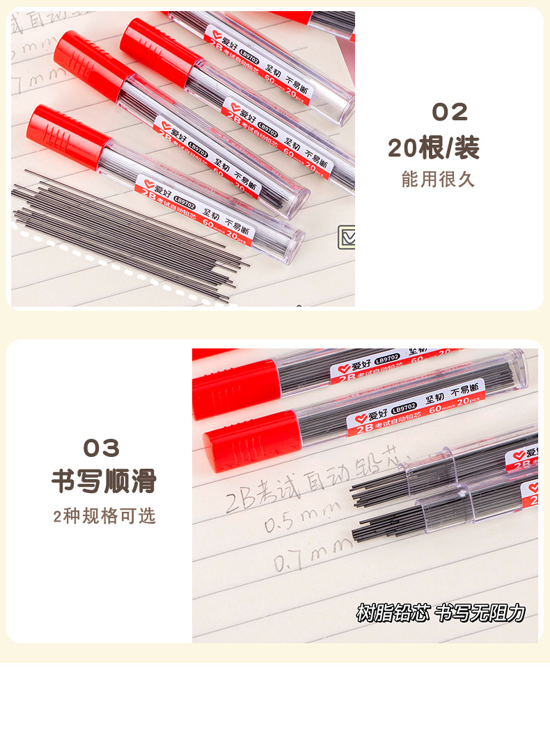 학생 문구 자동 연필 리드 시험 리필 2B0.5 0.7 창조적 인 대용량 리드 보상 선물스토어 가기