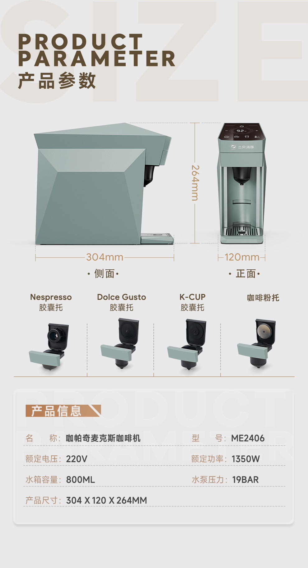 • 실버 그레이 트레이 1개(돌체 캡슐과 호환 가능)
