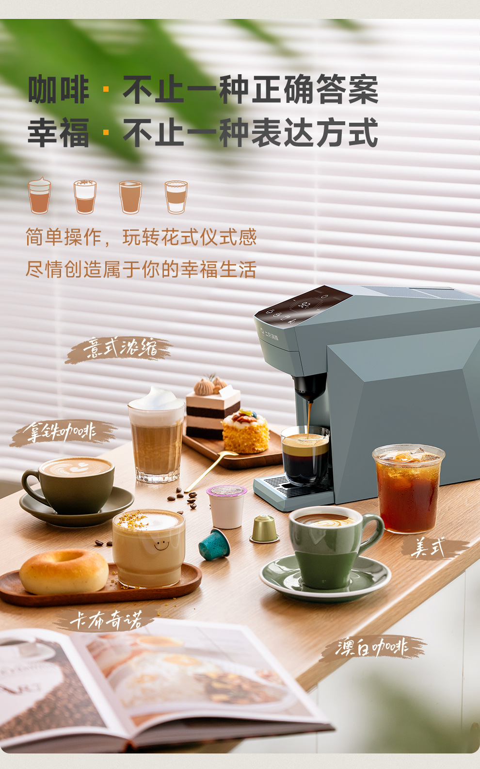 카파 치 오피스 홈 스마트 터치 스크린 원 버튼 시작 멀티 맛 캡슐 미국 이탈리아 커피 머신