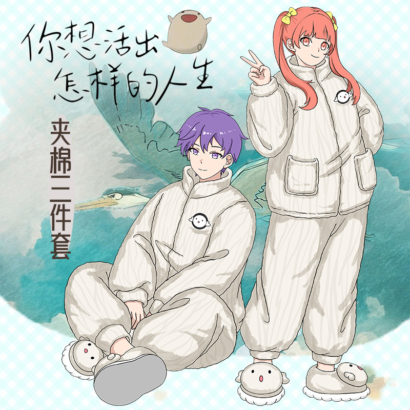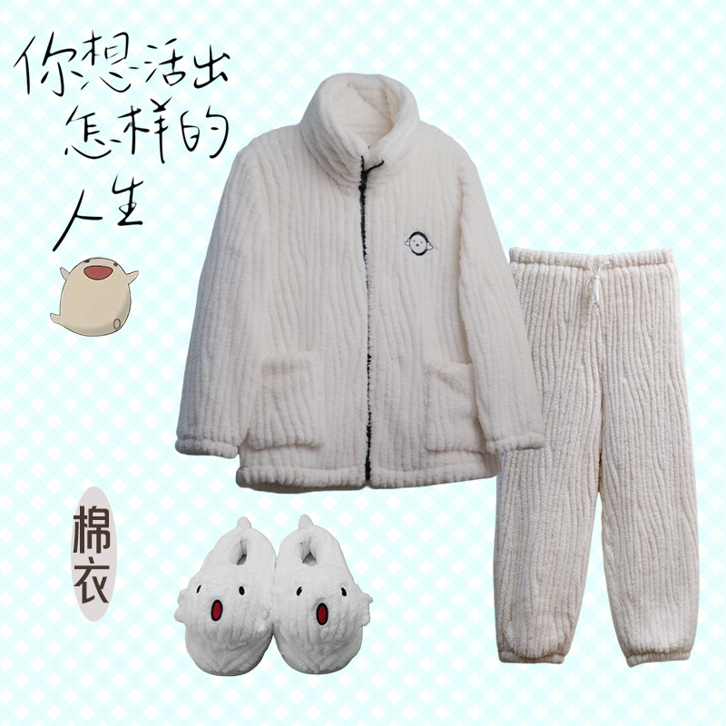십대 및 학생 재미있는 표현 가방 잠옷 홈 의류 세트 커플 성인 남성과 여성 가을과 겨울 기모 두껍게