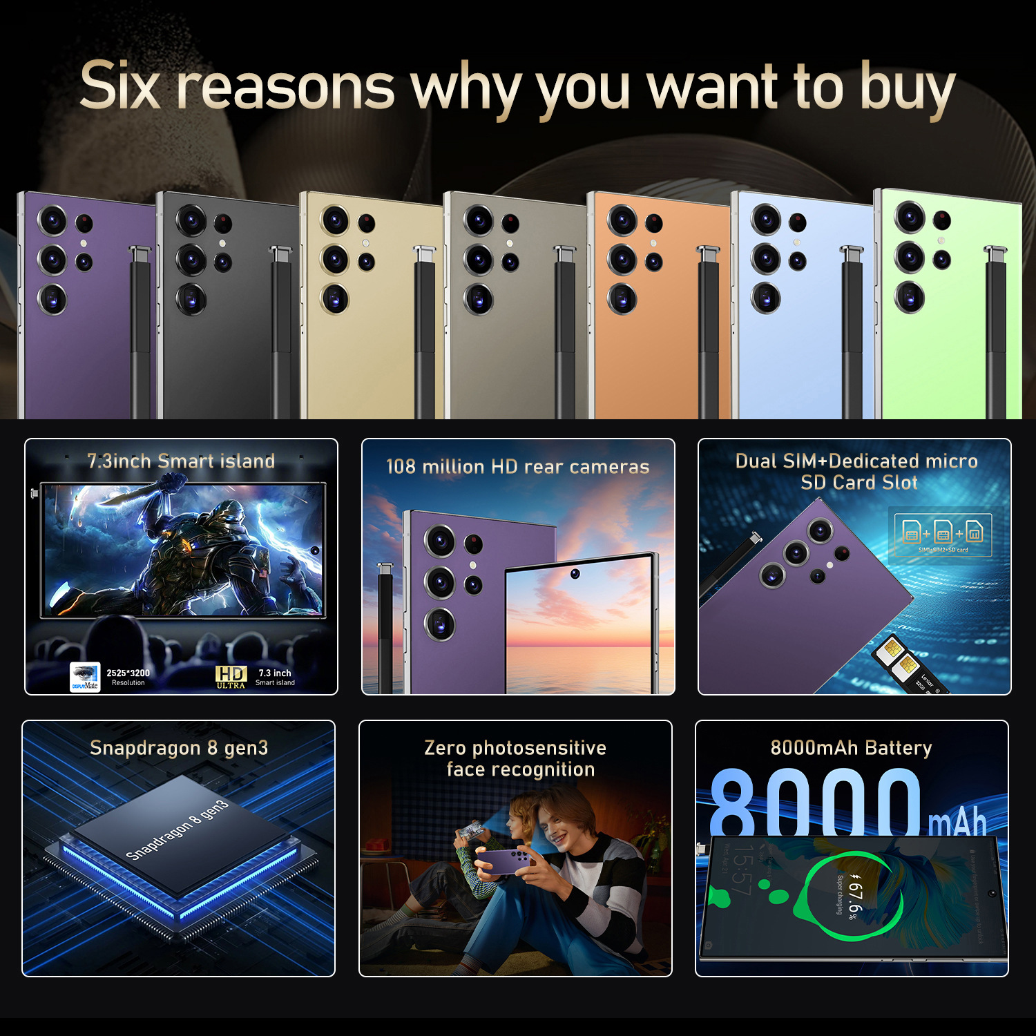 S24 울트라 고급형 크로스보더 스마트 5G 공장 휴대폰 16+1T 안드로이드 7.3inch 대형 화면 현물 도매스토어 가기