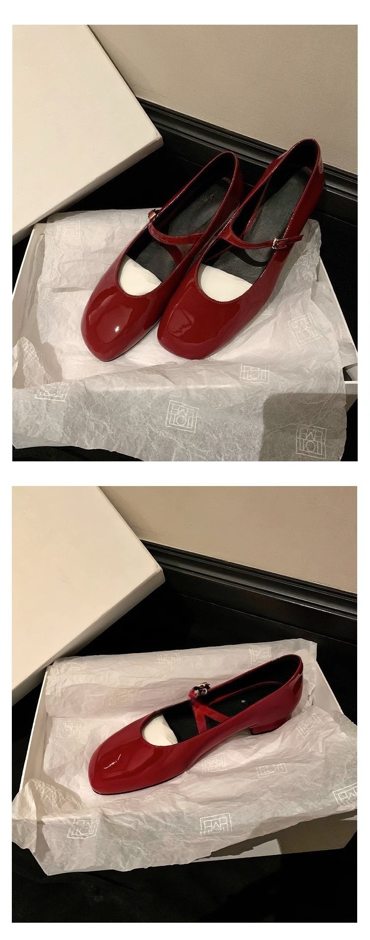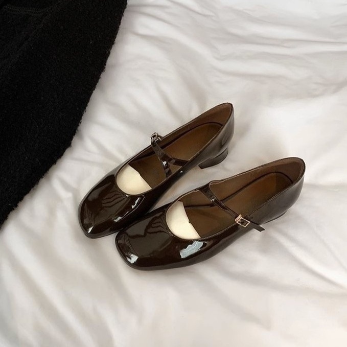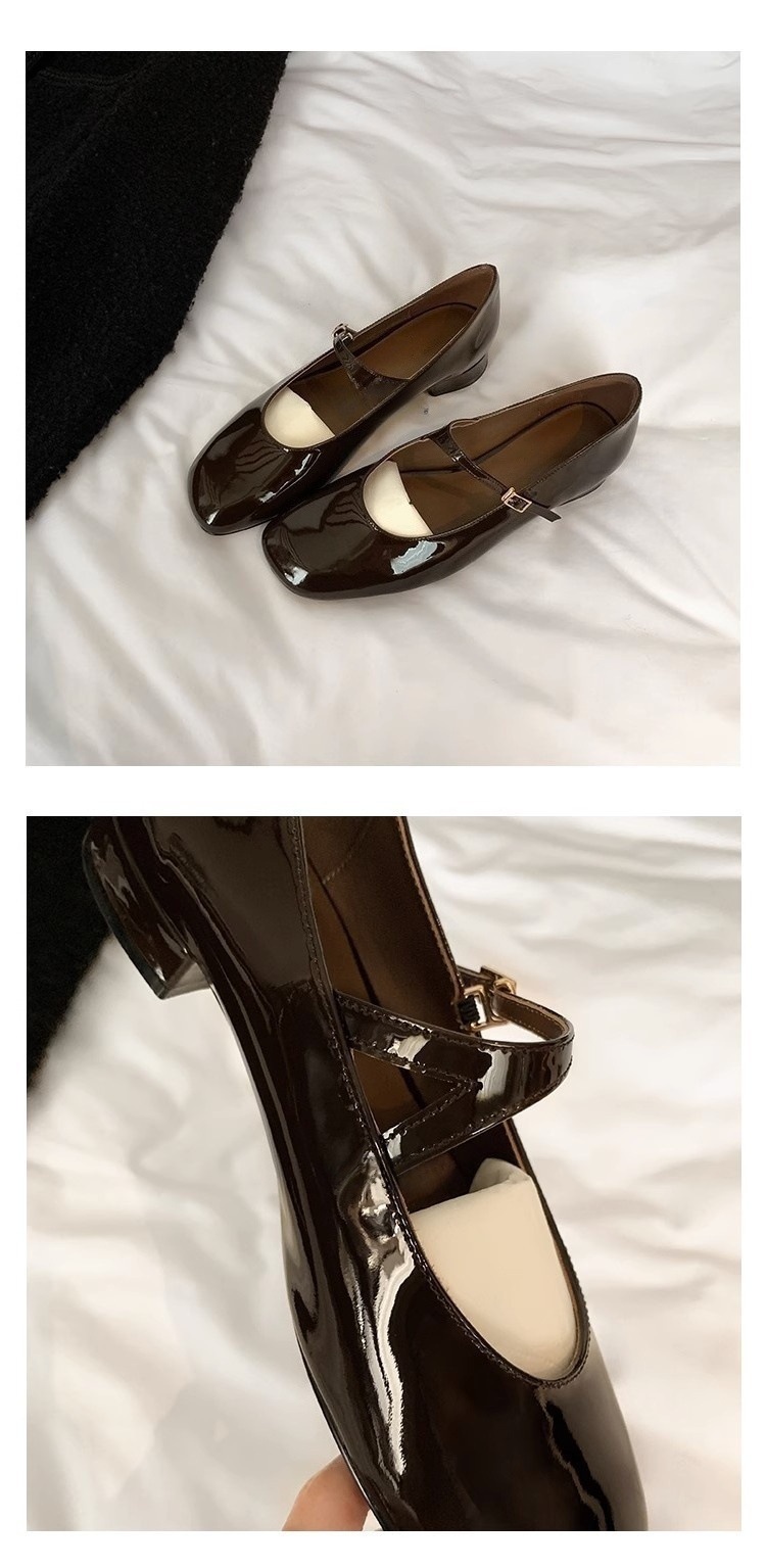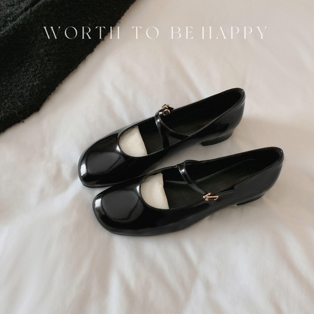 Cowhide 버전 ~ Su Yinyin with 여름 새로운 프랑스 조커 특허 가죽 버클 두꺼운 힐 Mary Jane 여성 신발스토어 가기