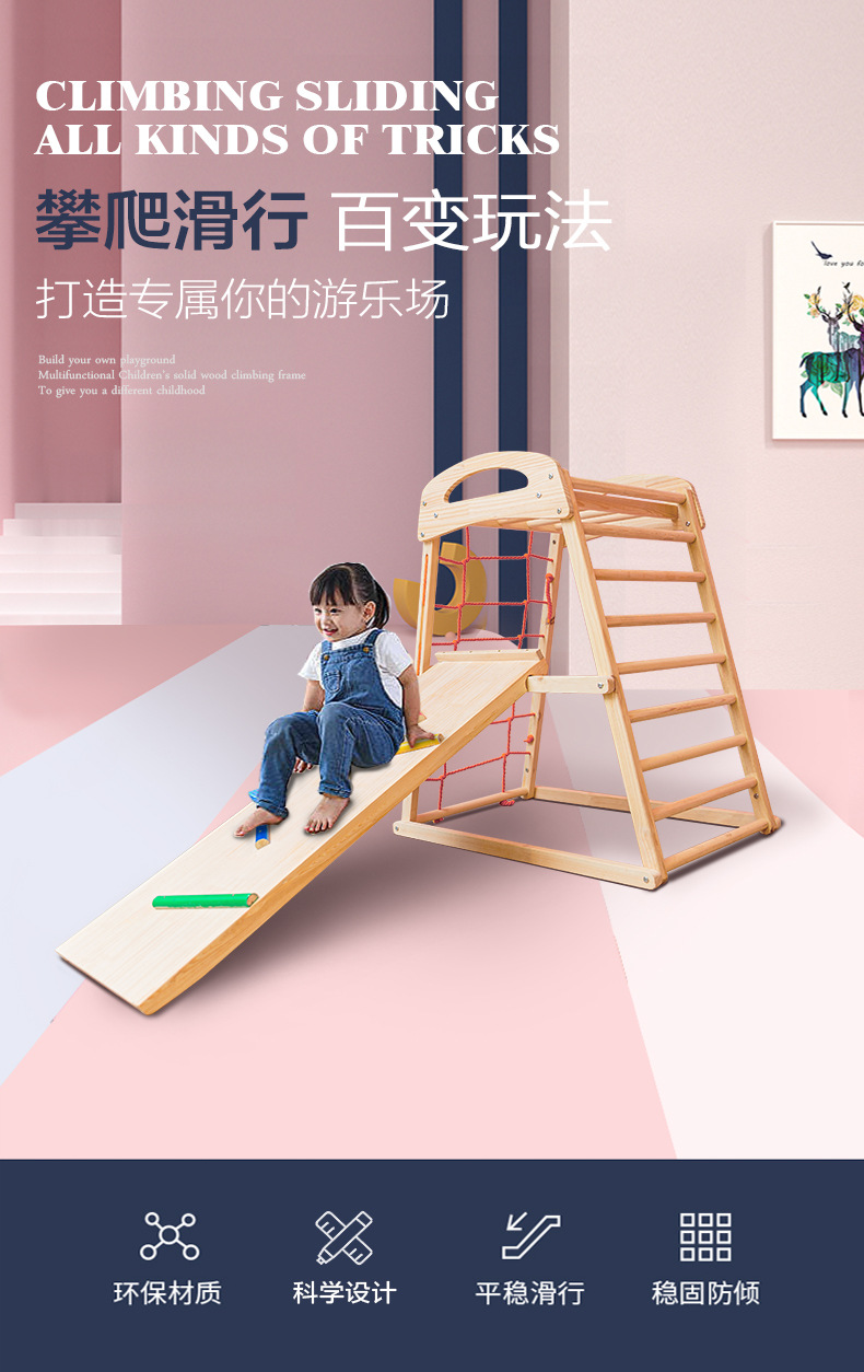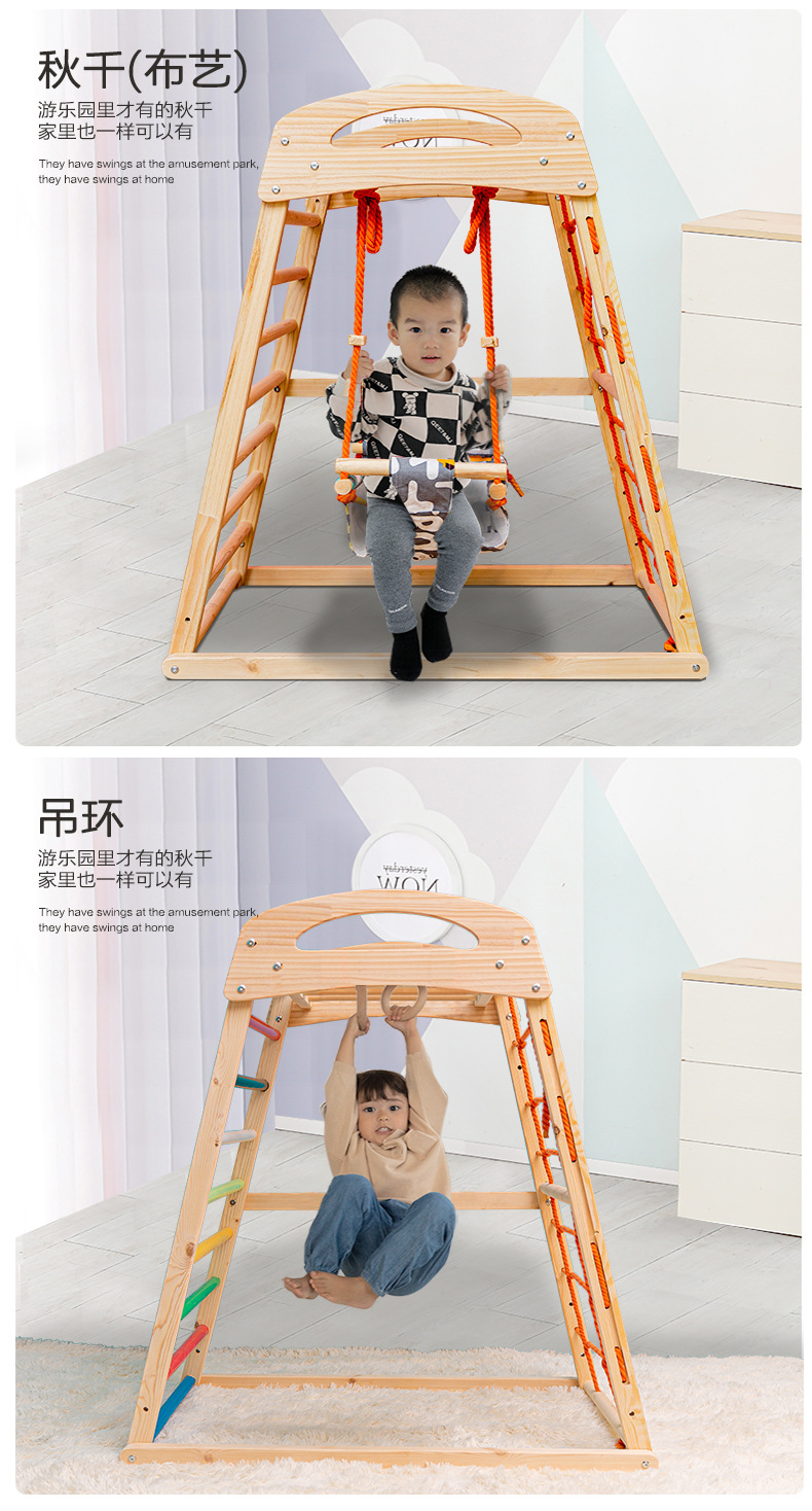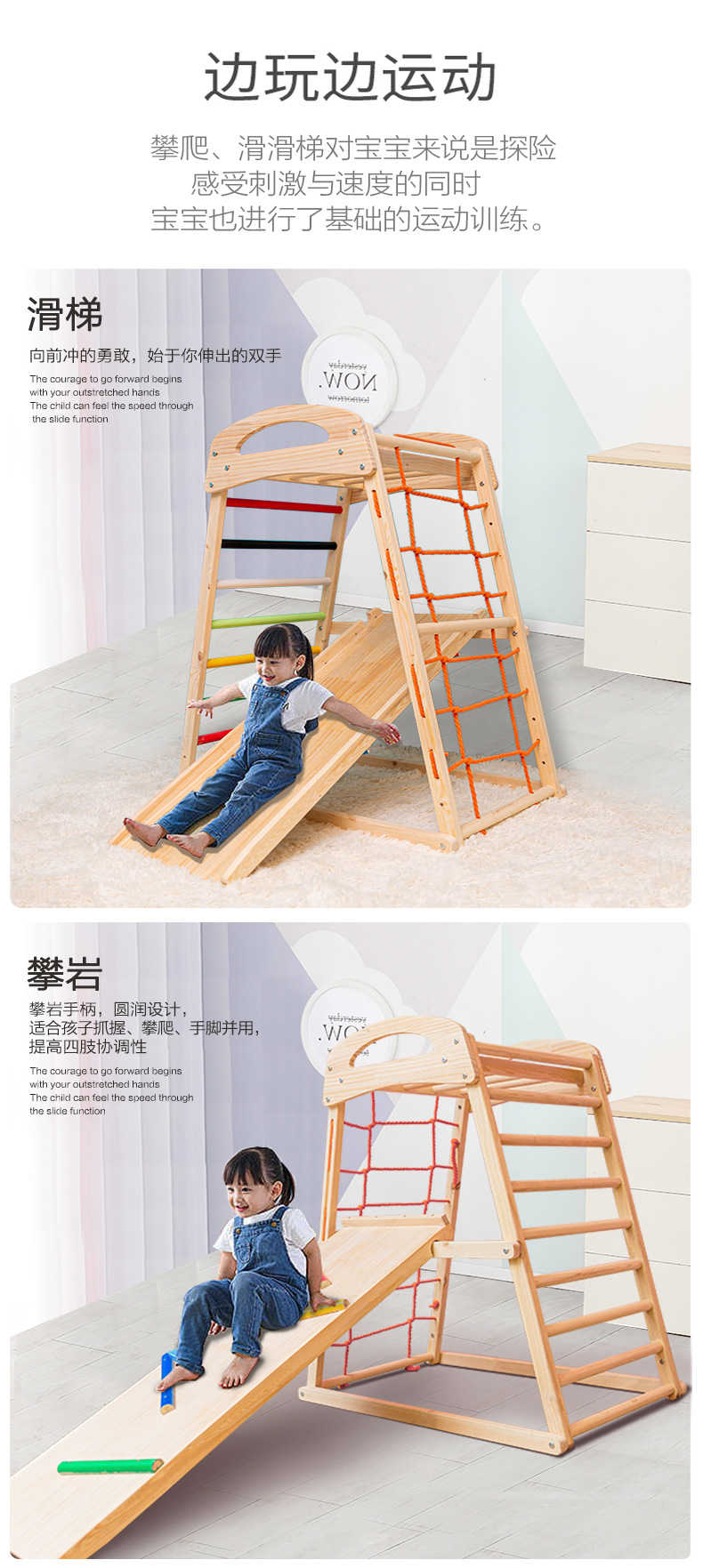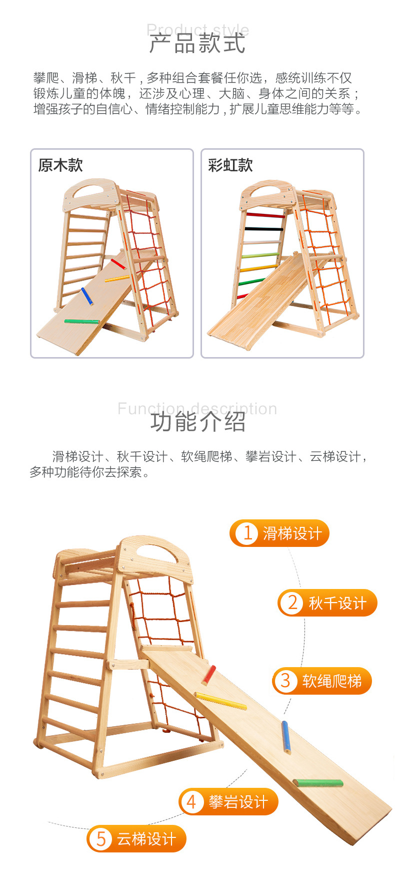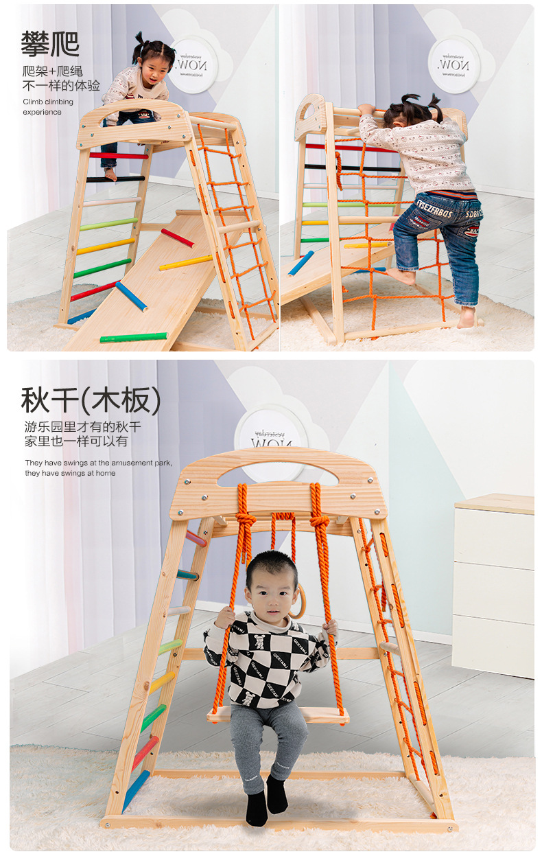 어린이 단단한 나무 등반 랙 실내 작은 등반 운동 아기 홈 슬라이드 스윙 바위 등반 조합 장난감스토어 가기