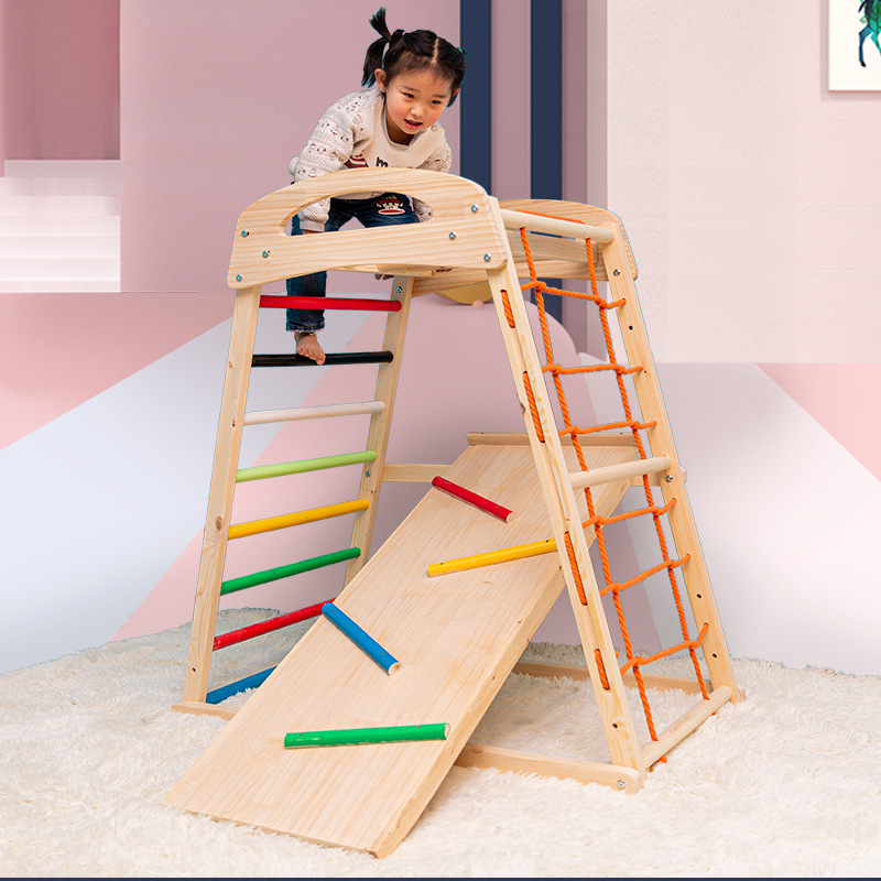 어린이 단단한 나무 등반 랙 실내 작은 등반 운동 아기 홈 슬라이드 스윙 바위 등반 조합 장난감